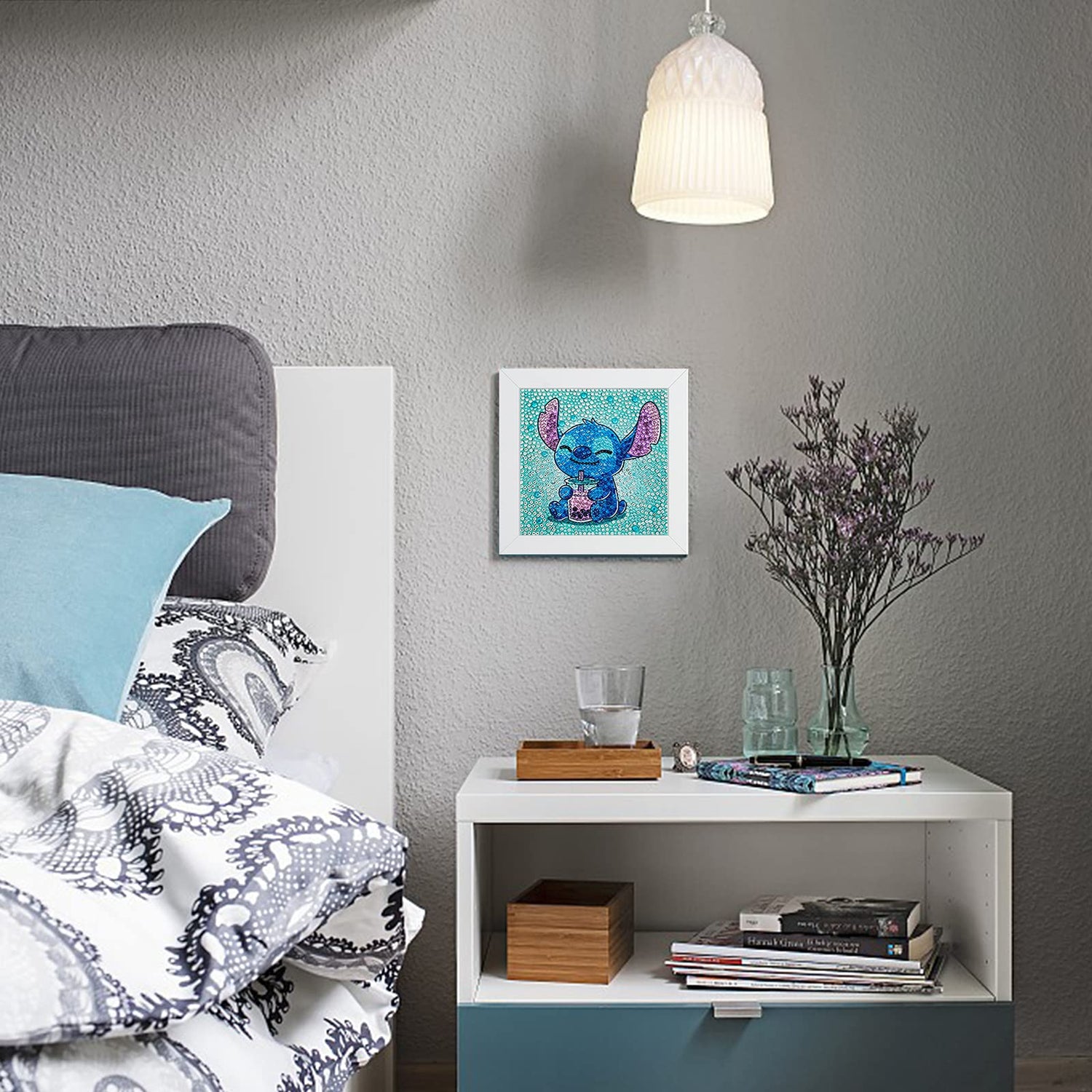 AllWenTo 5D Diamond Painting Kit for Kids with Wooden Frame Easy Small Anime Diamond Painting Full Drill Diamond Art Gem Painting for Beginners 7X7 inch (Stitch)