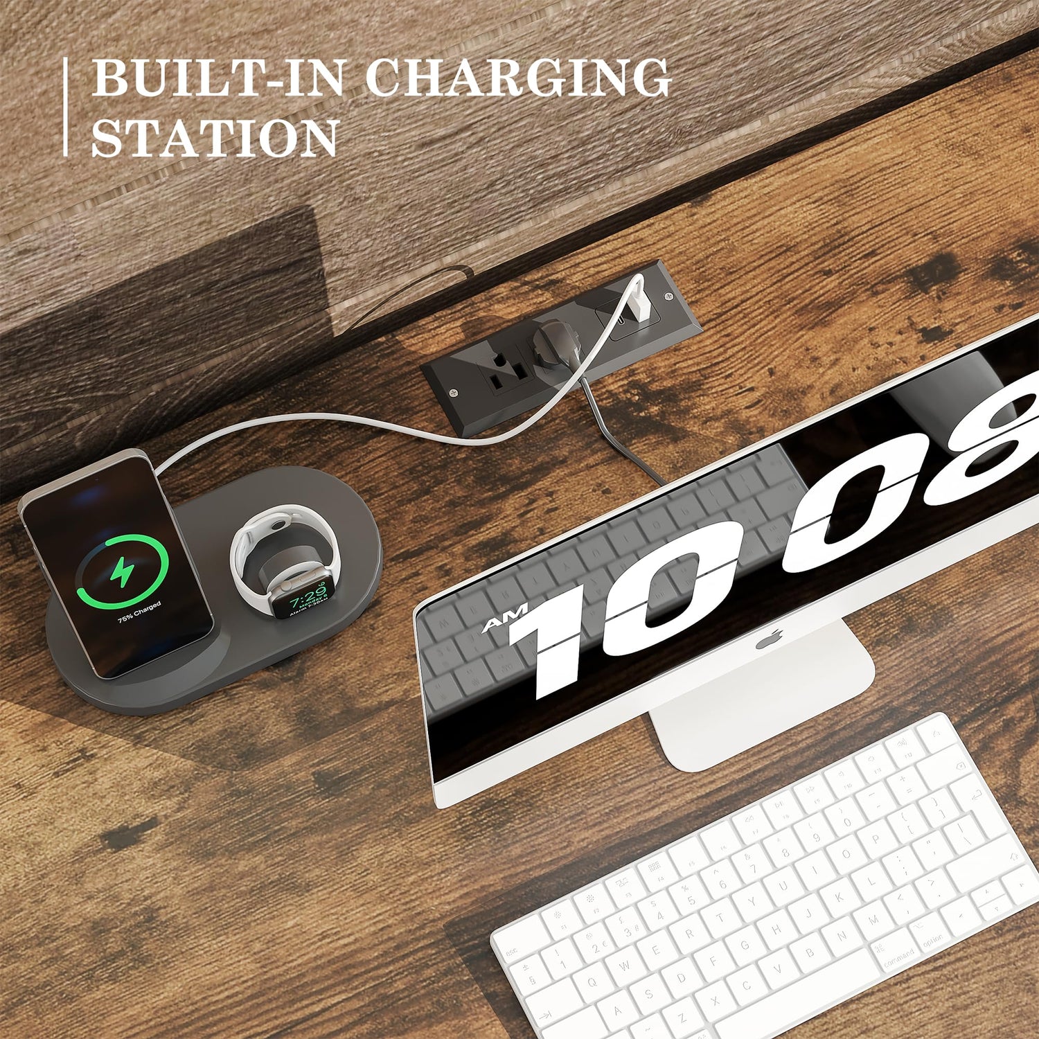 - Convenient Power Outlets: This writing desk features a charging station with two power outlets, a USB port, and a Type-C port, ensuring easy access to power for your phone, laptop and other devices