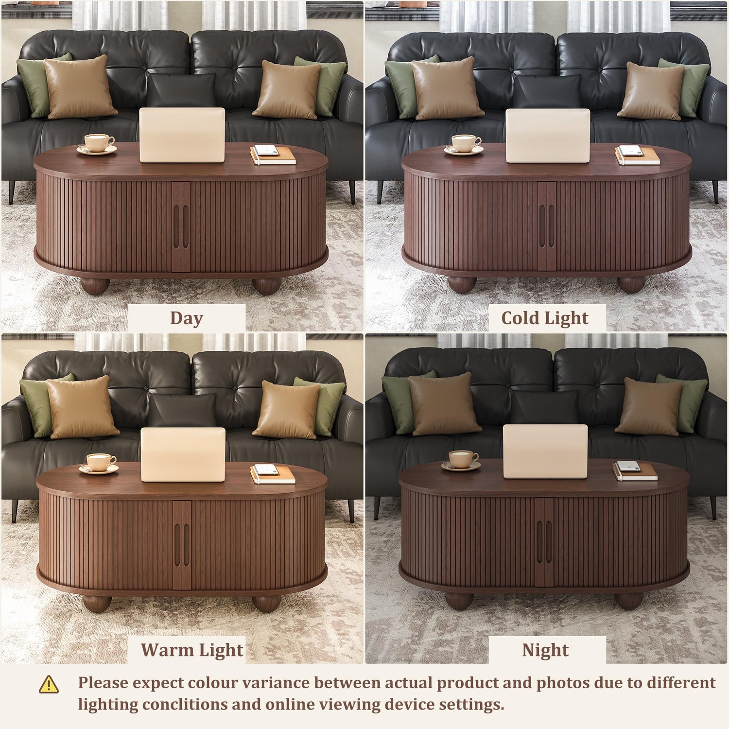 - 【Spacious Storage & 360°Sliding Door】Our Fluted Coffee Table has 360° sliding doors for space saving and easy access. The 6 separate storage spaces are enough to store your often-used items such as books, cups, games, controllers, etc., keeping them away from dirt and offering extra space. Our curved coffee table maximizes your storage potential.