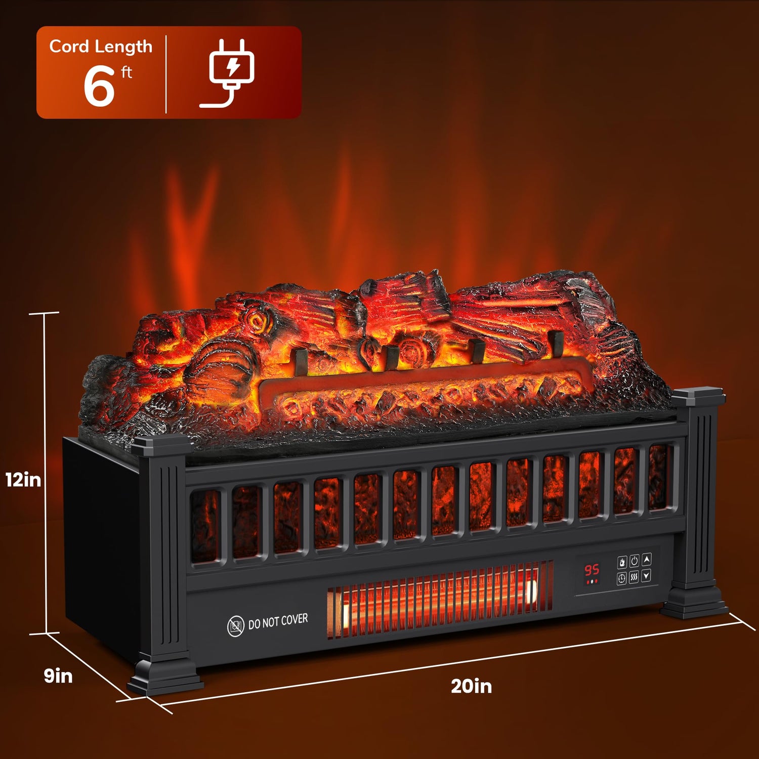 Alpaca Electric Fireplace Logs 20-Inch, Remote Controller Fireplace Insert Log Heater, Adjustable Flame Colors, Realistic Fake firewood Flame, Overheat Protection, Timer, Thermostat, 1500W Black