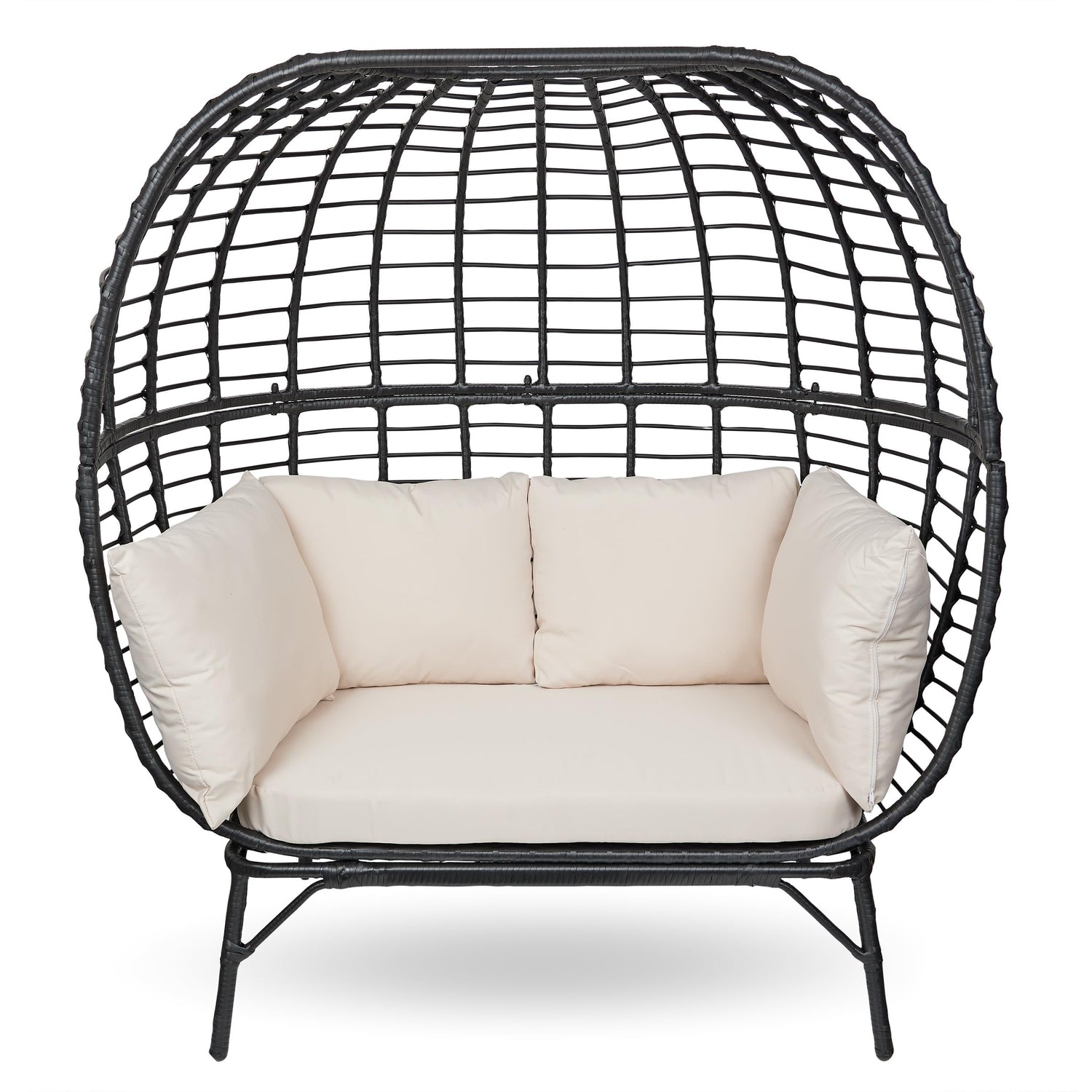 Details: Level up your outdoor seating area with the Black Double Seat Egg Chair with Cushions. If you have a garden or enjoy indoor or outdoor get-togethers, this durable chair is a must. It provides comfortable double seating while you read outside, or allows more space for family and friends during a barbecue. The comfortable cushions means that you’ll be spending even more time looking out over your garden. The durable steel helps it bear weight and withstand the elements. It will quickly become a favorite seat on your deck or patio. No matter where you decide to put this outdoor deck chair, you’ll be thrilled with the Black Double Seat Egg Chair with Cushions. With Alpine's 1-year Support, you can Shop With Assurance and Buy With Confidence.