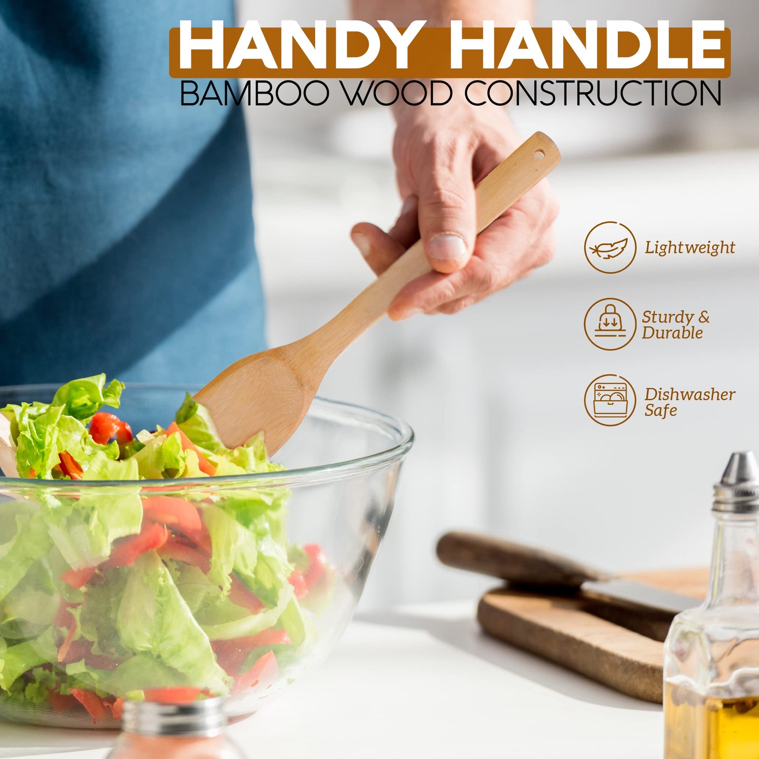 - 100% CUSTOMER SATISFACTION: We want our customers to be completely happy and satisfied, so we pack each bamboo wood cooking spatula with a wood handle. If you have any questions or concerns about this large wood spatula, please feel free to reach out to us.