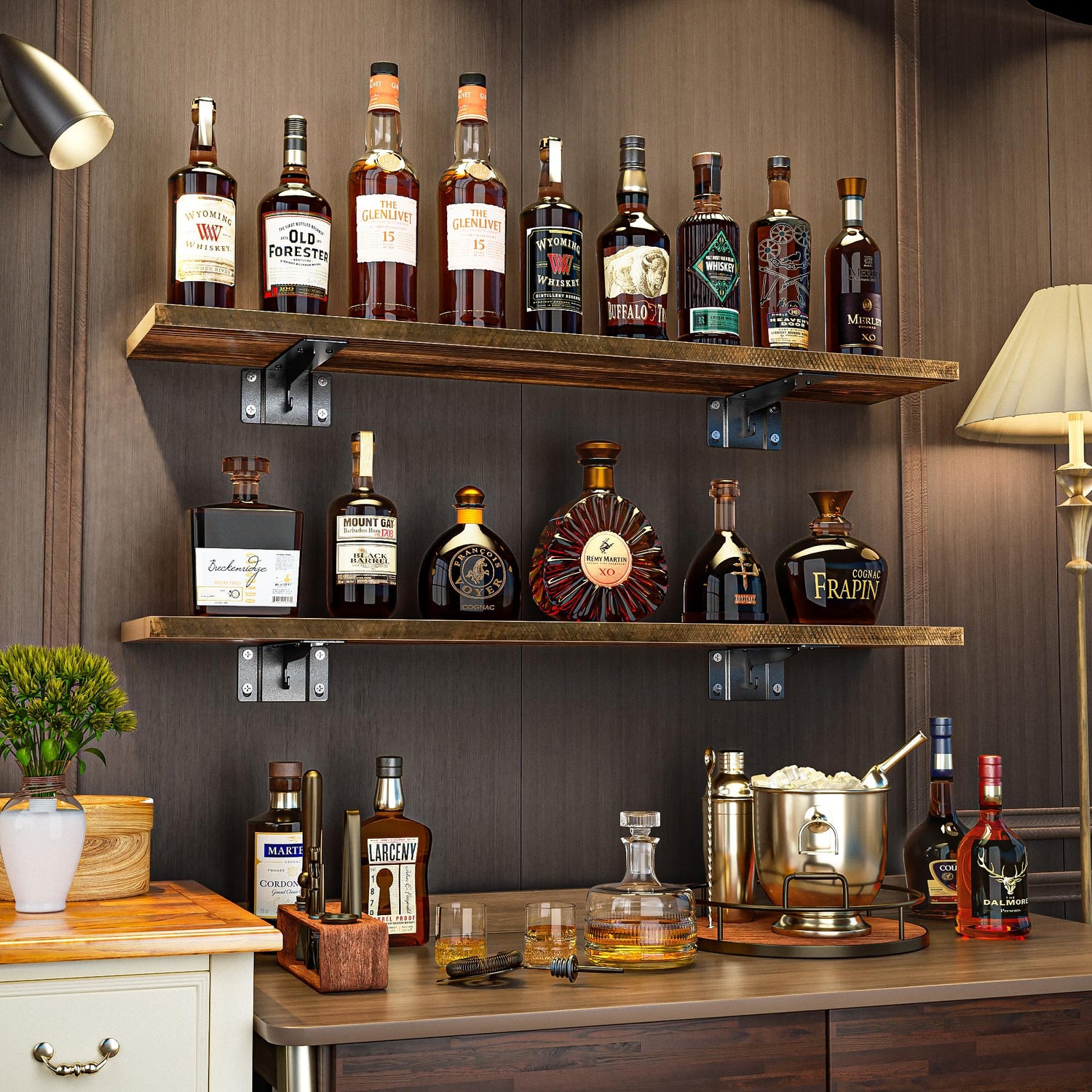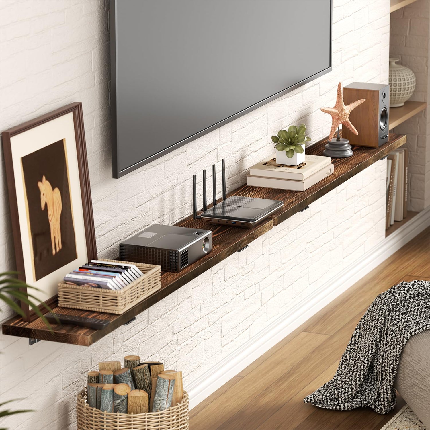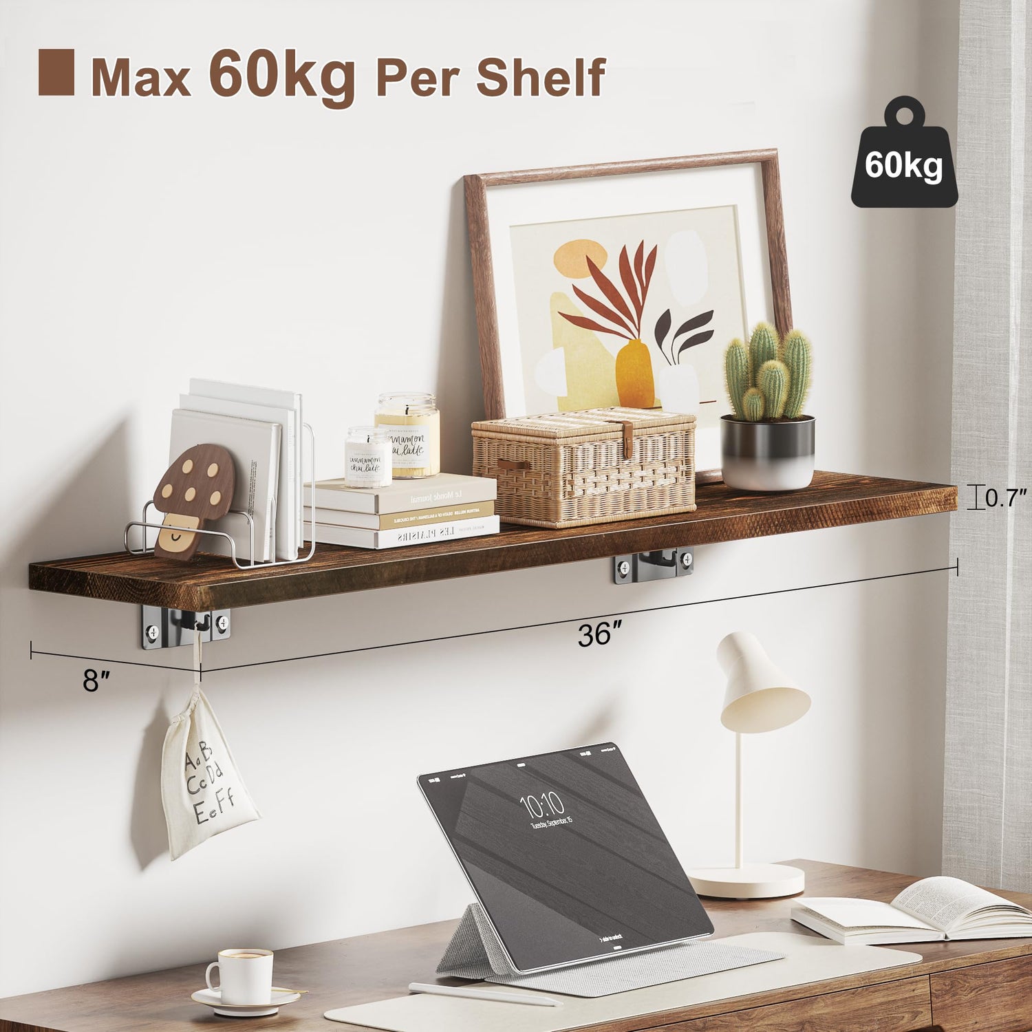 Alsonerbay 36 Inch Floating Shelves for Wall Storage, Wooden Wall Shelves Large Rustic Shelves for Bathroom, Living Room, Bedroom (2 Pack, Dark Brown)