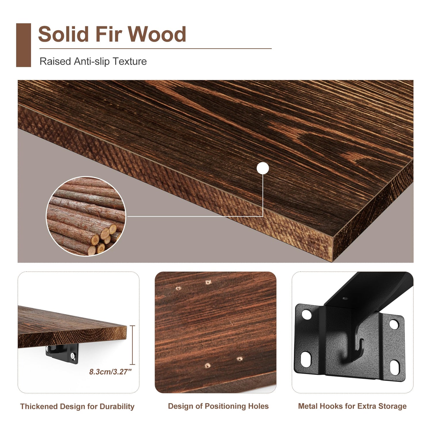 - Crafted from high-quality fir wood, these large wall shelves not only offer a natural aesthetic but also boast a raised anti-slip texture, which enhances the security of stored items and prevents sliding or accidental falling