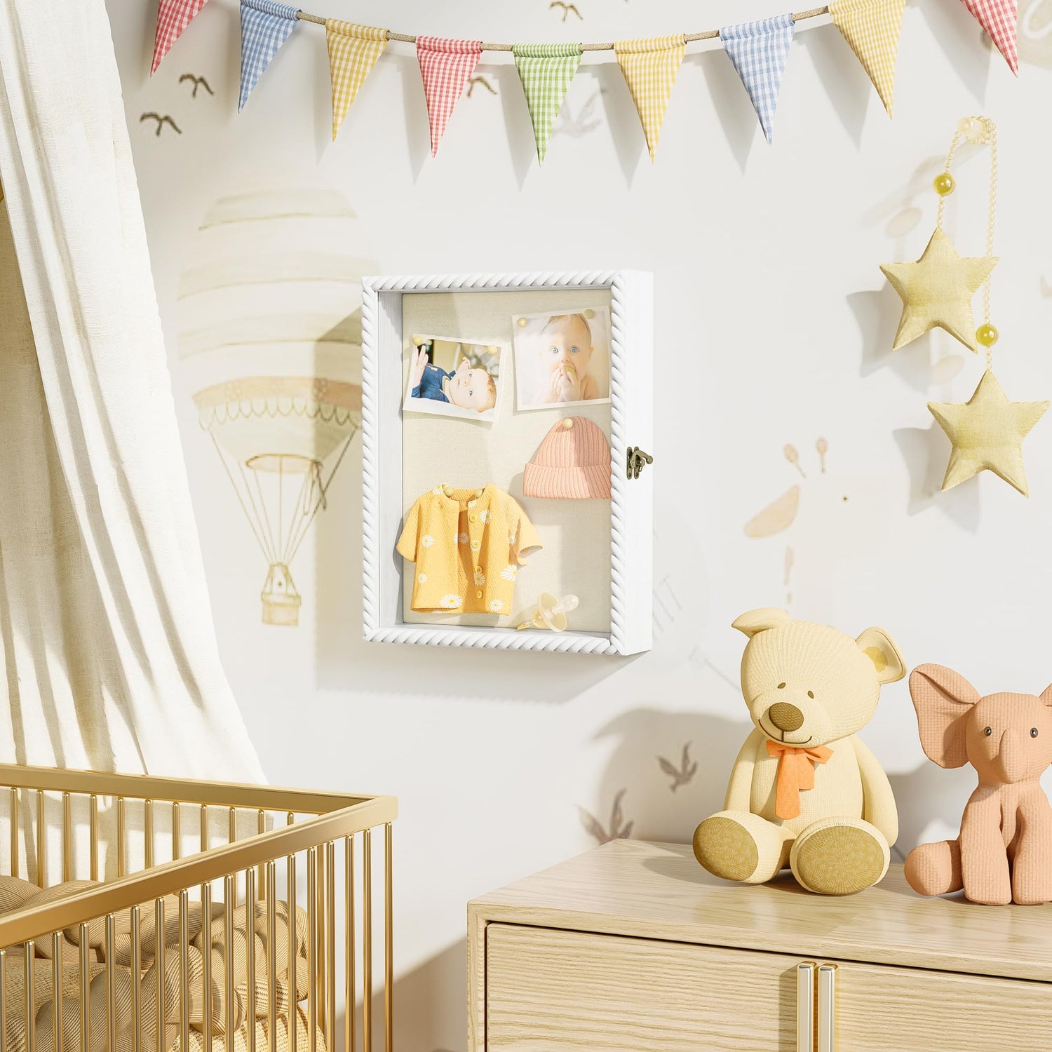 Alsonerbay Shadow Box Frame 11 x 14, Wood Shadow Box Display Case with Linen Back and Twist Shape Door, Pet Memorial Shadow Box for Memorabilia Picture Medals Bouquet (White, 11x14)