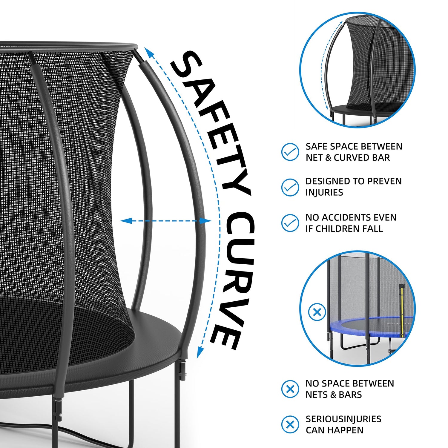 - Safe Design: Our trampoline features a reinforced safety net enclosure and padded poles, offering maximum protection while you enjoy your jumps.