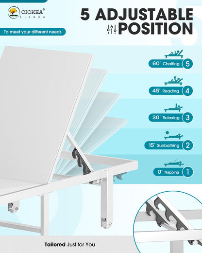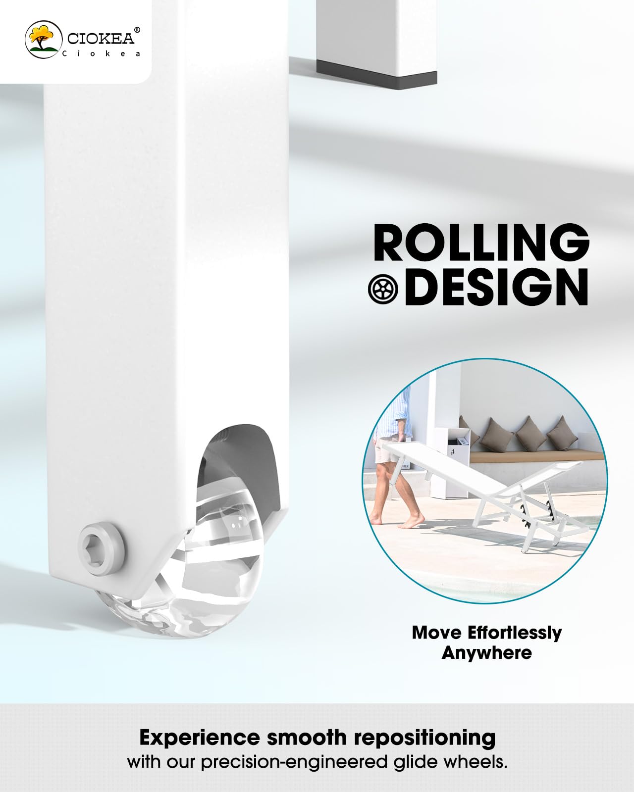 - Enhanced Mobility: With the added convenience of wheels at the base, moving your CIOKEA lounge chair around your patio or garden has never been easier. This upgrade allows effortless repositioning so you can always find just the right spot in the sun or shade