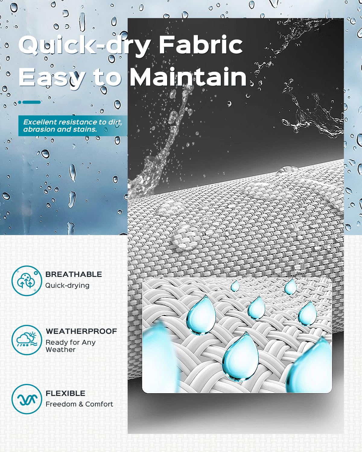 • 【EASY MAINTENANCE】This chaise lounge boasts a robust aluminum frame and premium Texitilene fabric. Durable and weather-resistant, the lightweight Texitilene material is breathable and quick-drying, ensuring air circulation and ventilation on hot days for optimal comfort