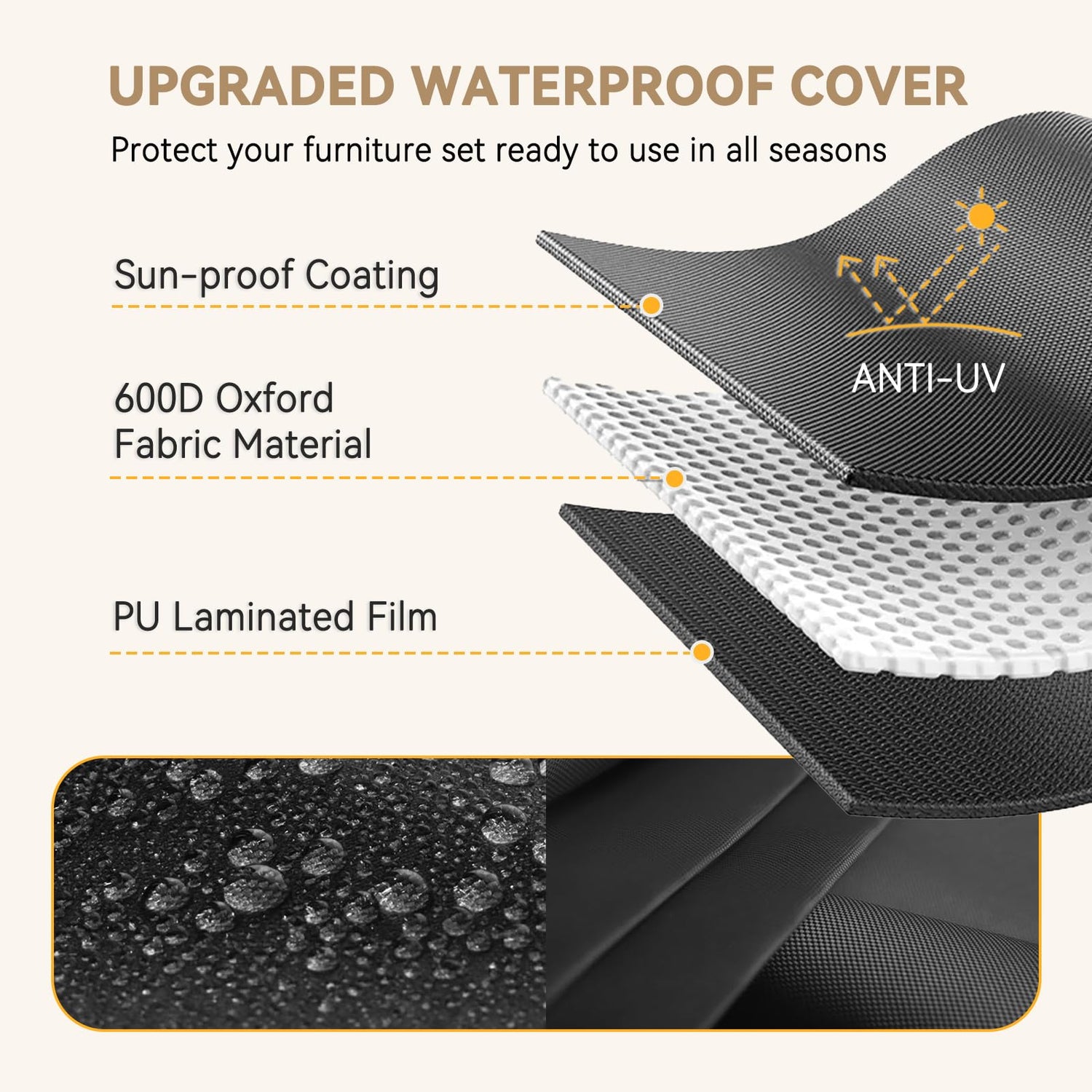 - 【Hassle-Free Assembly with 24/7 Customer Support】 Installation process may take 1-2 hours, using a power screwdriver can make the process even faster. This investment-grade outdoor furniture set features waterproof fabric and a sturdy frame, ensuring a worry-free ownership experience. Additionally, our customer support team is available 24/7 to promptly address any issues. The product ships in multiple boxes with numbered parts for effortless identification.