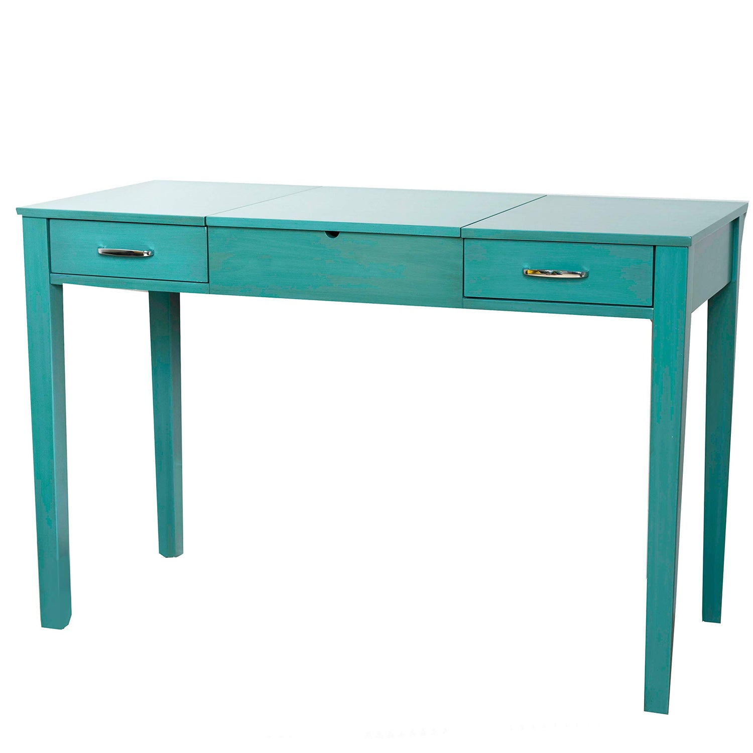 Alveare Home Aimee Makeup Dressing Table with USB and Outlet Vanity Desk, Turquoise