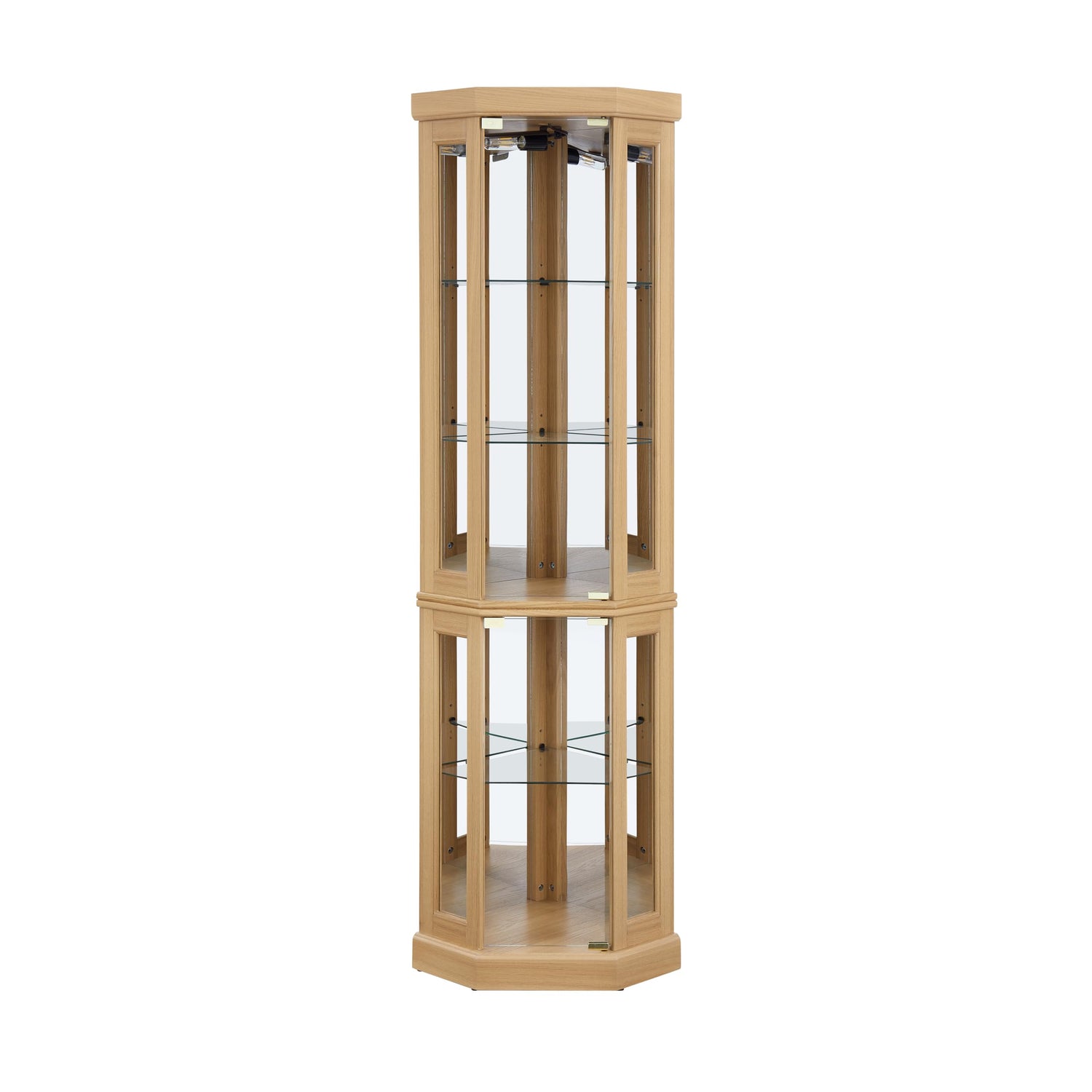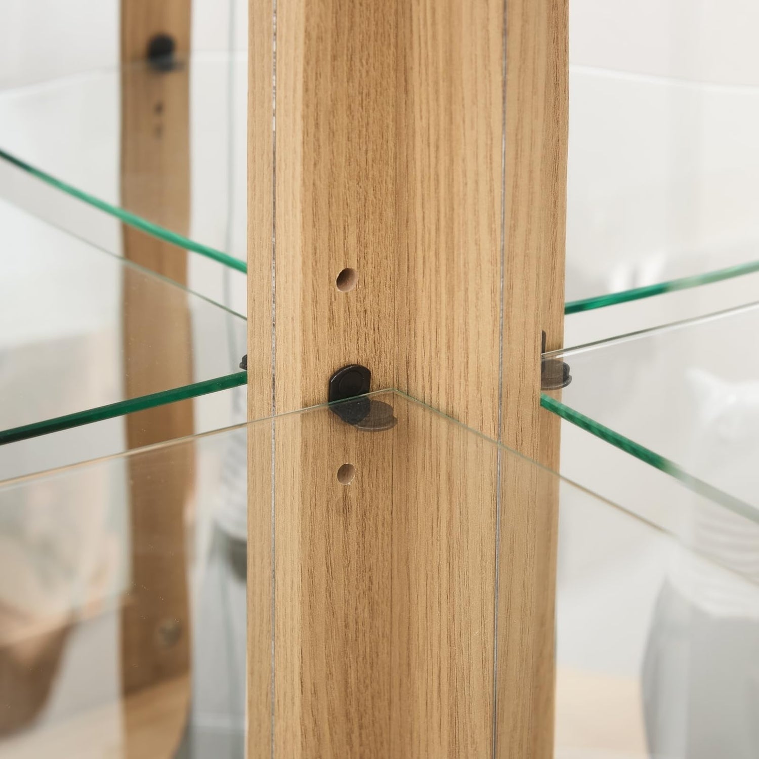 - Elegant Design: Available in Cherry , White or Oak, this corner cabinet with glass doors and shelves features a gracefully curved silhouette that is impeccably smooth. Its aesthetically pleasing design brings tranquility to your interior decor, softly highlighting and elegantly displaying your cherished items