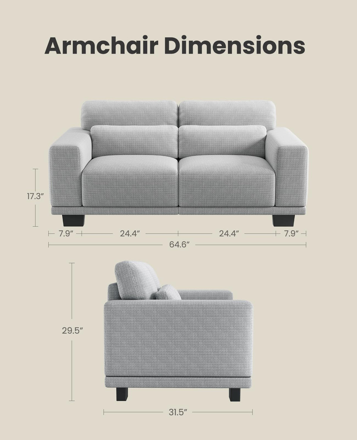 - 【Spacious and Comfortable Design】With a generous size of 65" wide and 31.5" deep, the Loveseat Sofa brings you a luxurious space experience. Its flexible layout is perfectly suited for living rooms, bedrooms and other spaces, providing plenty of places to relax and lounge.