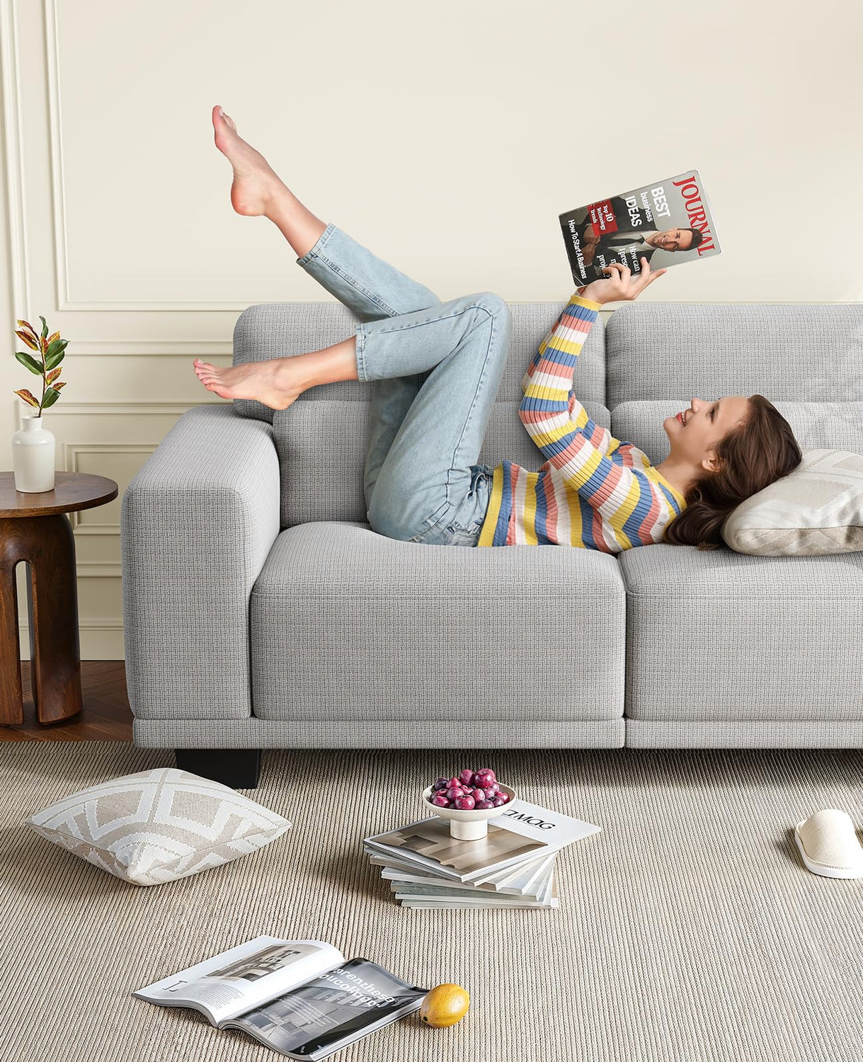 - 【Premium Linen Fabric&Independent Spring】Using high quality linen fabric with 50% thickened foam cushion, the modern sofa delivers a soft and comfortable sitting experience. Individually wrapped pocket springs provide excellent support and remain comfortable even after long hours of lounging.