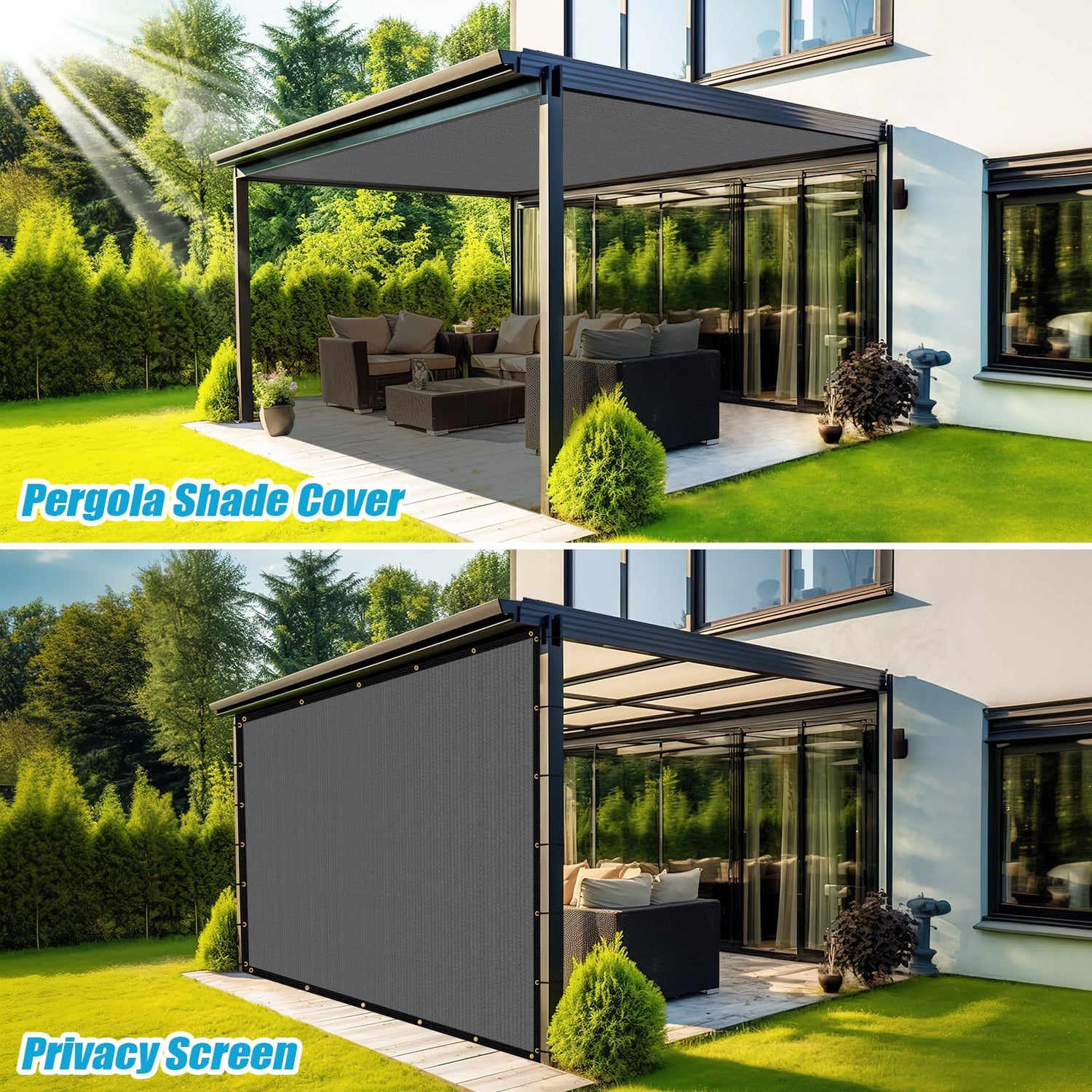 - 【Ideal Shade Solutions】: The pergola replacement canopy provides dense outdoor shade of 90% shade rate. Widely used over a patio,garden, carport, porch, deck, pergola, courtyard or other outdoor area.