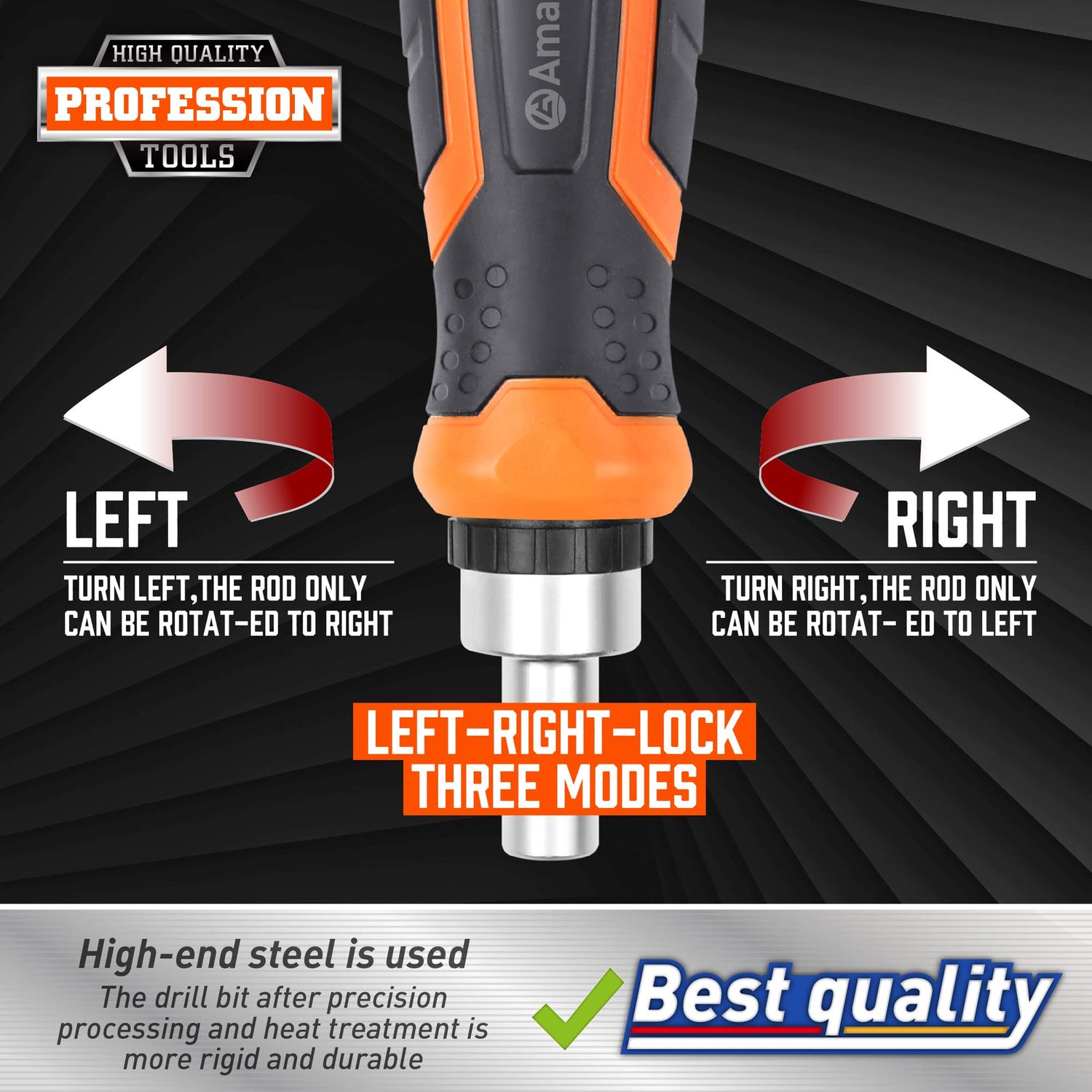 - [High-Quality]: Multi-bits Ratcheting screwdriver has an ergonomic handle offering twisting force for three different applications, which enables clockwise,counter-clockwise ratcheting and locked positions.