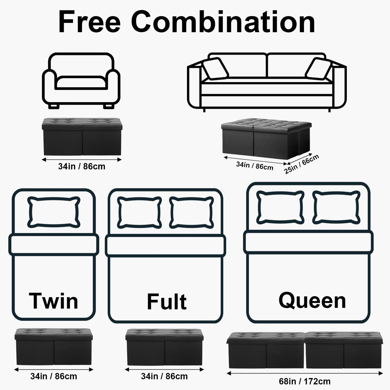 - 【Plenty of Storage Space】The folding ottoman bench sized 13.5”D x 34"W x 13.5”H (34 x 86 x 34 cm), can be reduces clutter in the home and allows you to store your blankets, cushions, books and sports equipment in the living room.