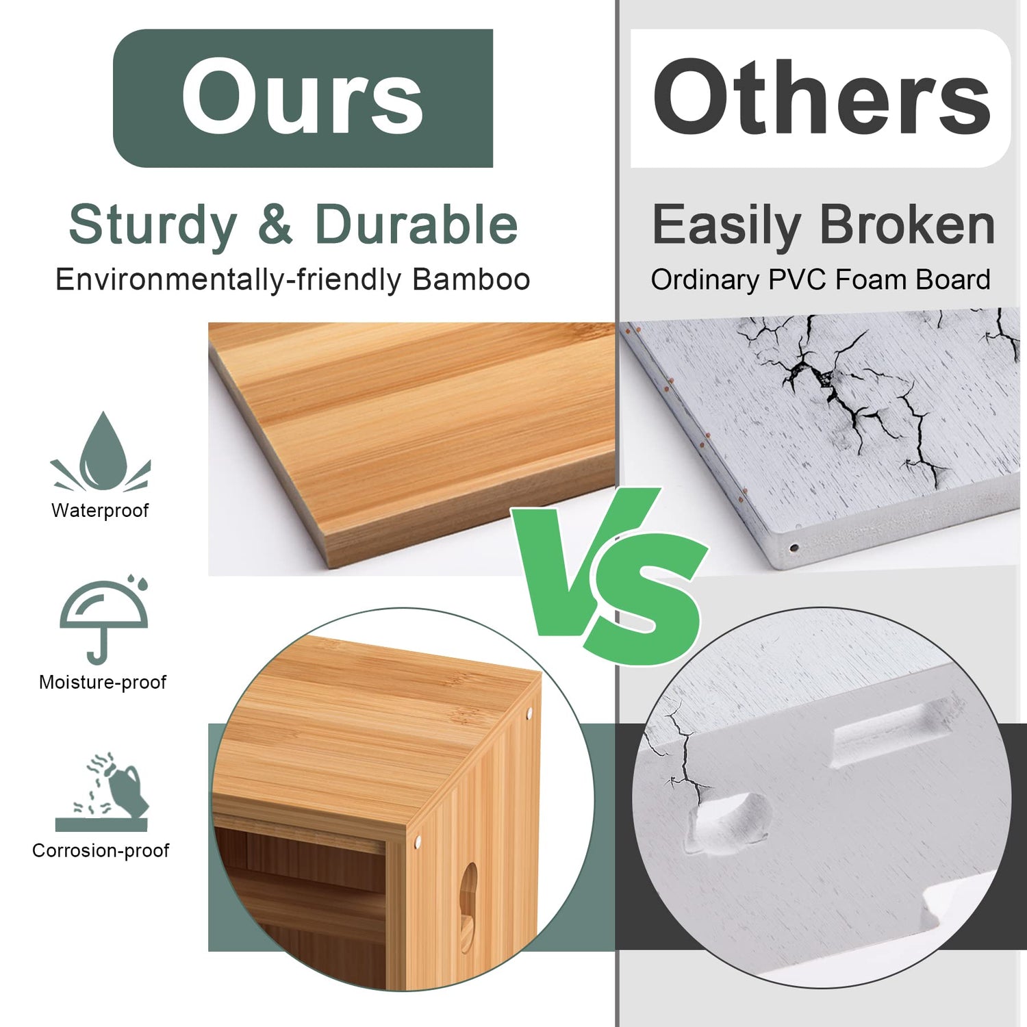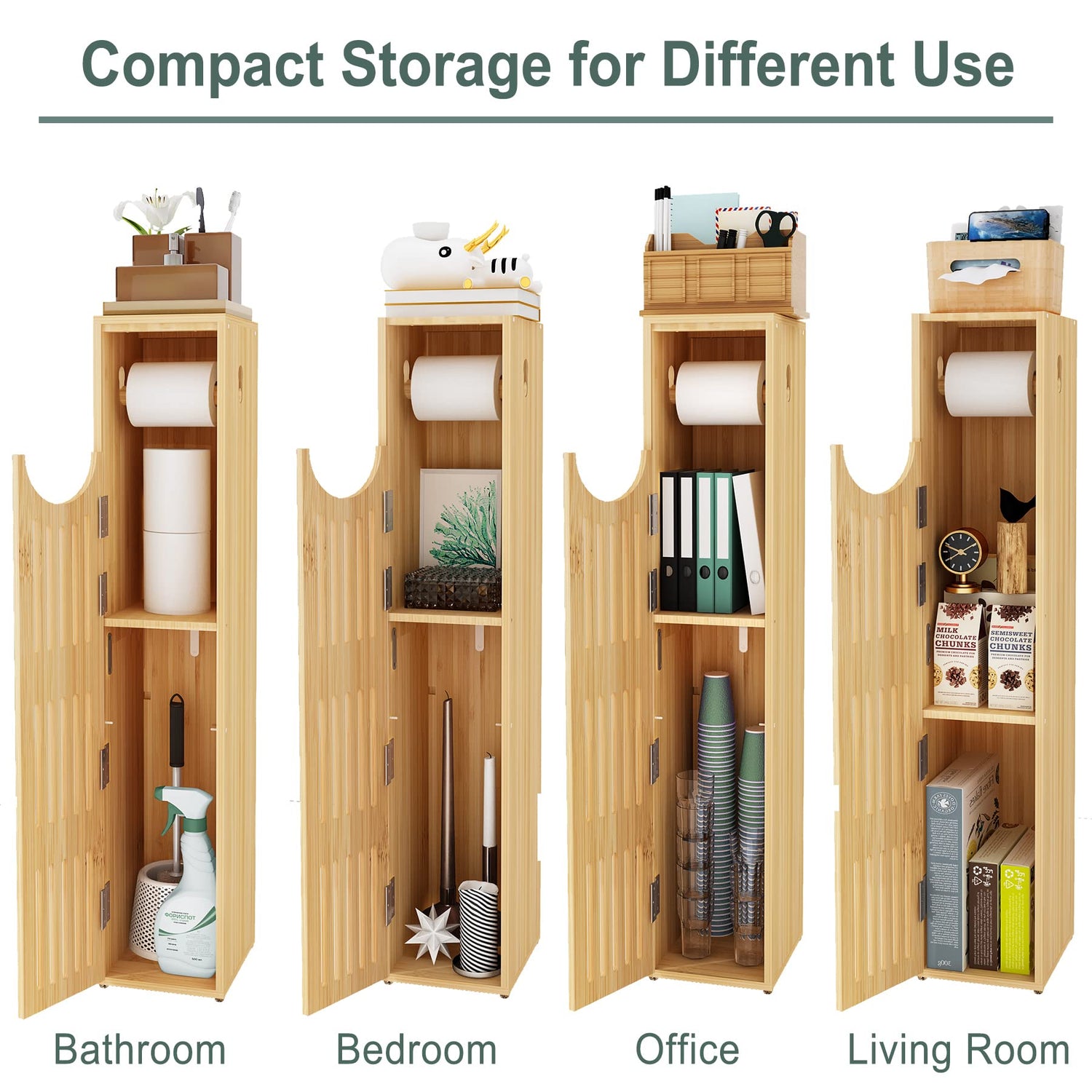 - Upgraded waterproof bamboo toilet paper storage cabinet: Made of premium environmentally-friendly bamboo and with its waterproof coating, AmazerBath small bathroom storage cabinet is much sturdier and more durable than other easily-broken PVC foam boards.
