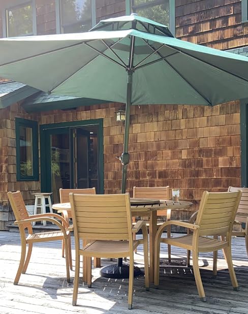 Details: This dining set is primarily made of high quality 100% FSC certified eucalyptus wood with a premium teak finish. Eucalyptus is a natural living material that is renowned for its rich reddish-brown color that darkens as it seasons, but also for its exceptionally resistance to rot and decay. It is also well known for its ability to withstand prolonged weathering and heavy impacts in the outdoor living environment. Main properties of eucalyptus include its sustainability, natural durability, smooth appearance, consistency, and affordable price. This set is perfect for gatherings and family dinners due a very useful lazy Susan table with 31 inches of diameter and 2in. umbrela hole. Functionality, sturdiness and durability for every outdoor or even indoors environment.