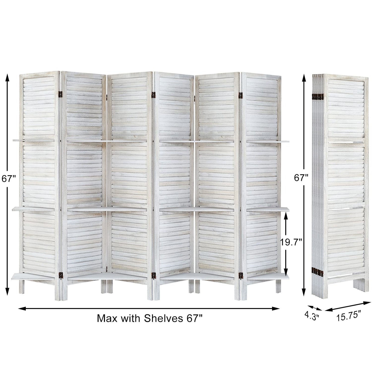 - Room Dividers with Shelves: The portable panel screen is built on solid wood, features a stylish louvered slat with 3 manufactured wood shelves to display your favorite decoratives while creating a smaller enclosed private space within a corner or along a wall.
