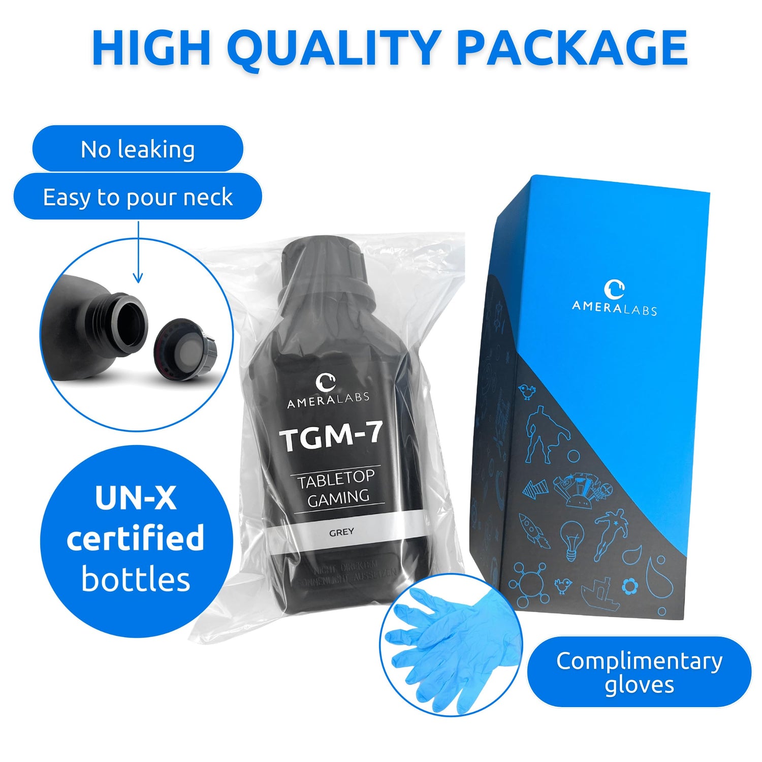 AmeraLabs TGM-7 3D Wargaming Resin for Tabletop Miniatures – Tough, High Resolution, Low Odor, Fast Curing 3D Printing Liquid for 4K/8K/12K LCD/DLP/SLA 3D Printers (Grey, 1kg)