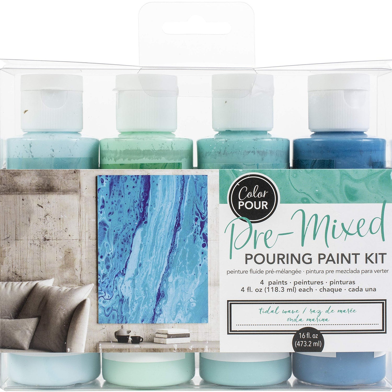 AMERICAN CRAFTS COLOR POUR PAINT KIT TIDAL WAVE, Multicolor 4 Fl Oz (Pack of 4)
