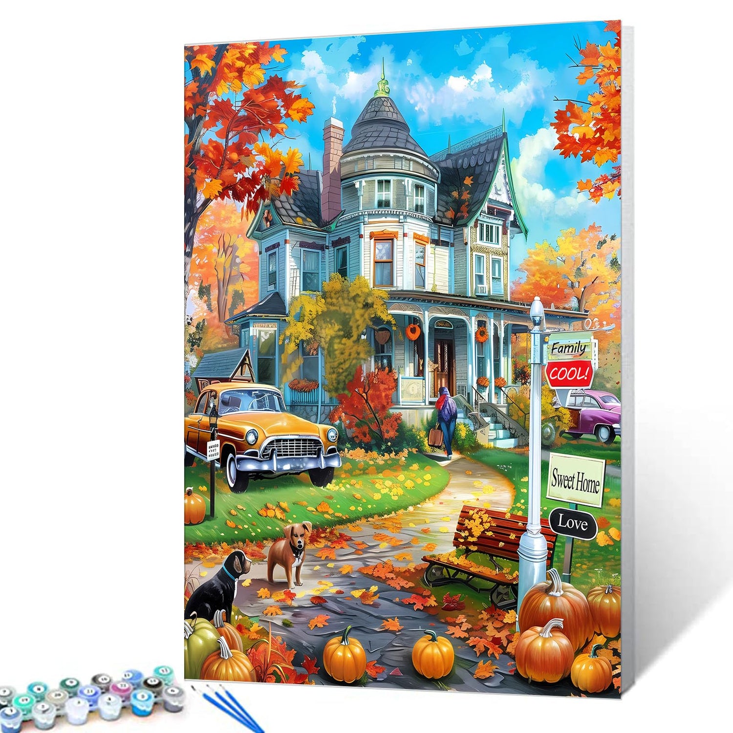 American Farm with Car Painting Autumn Landscape Paint by Number Kits 16 x 20 inch Canvas Castle DIY Oil Artwork for Adults Beginner with Brushes and Acrylic Boat Art Home Decor Boho Gift(Frameless)