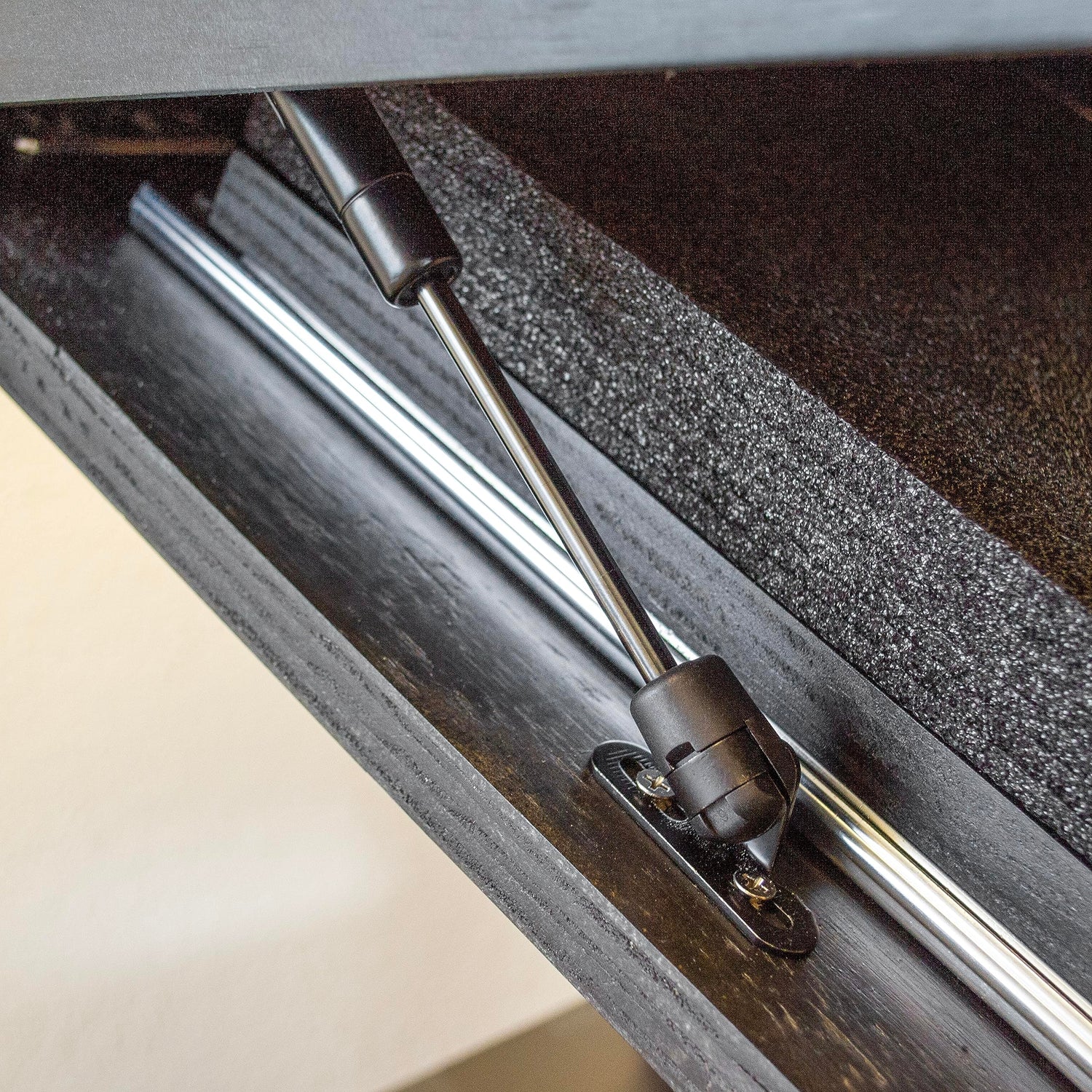 - HIDDEN DROP DOWN PANEL - Bottom shelf drops down via sturdy metal stay and ball bearing slides