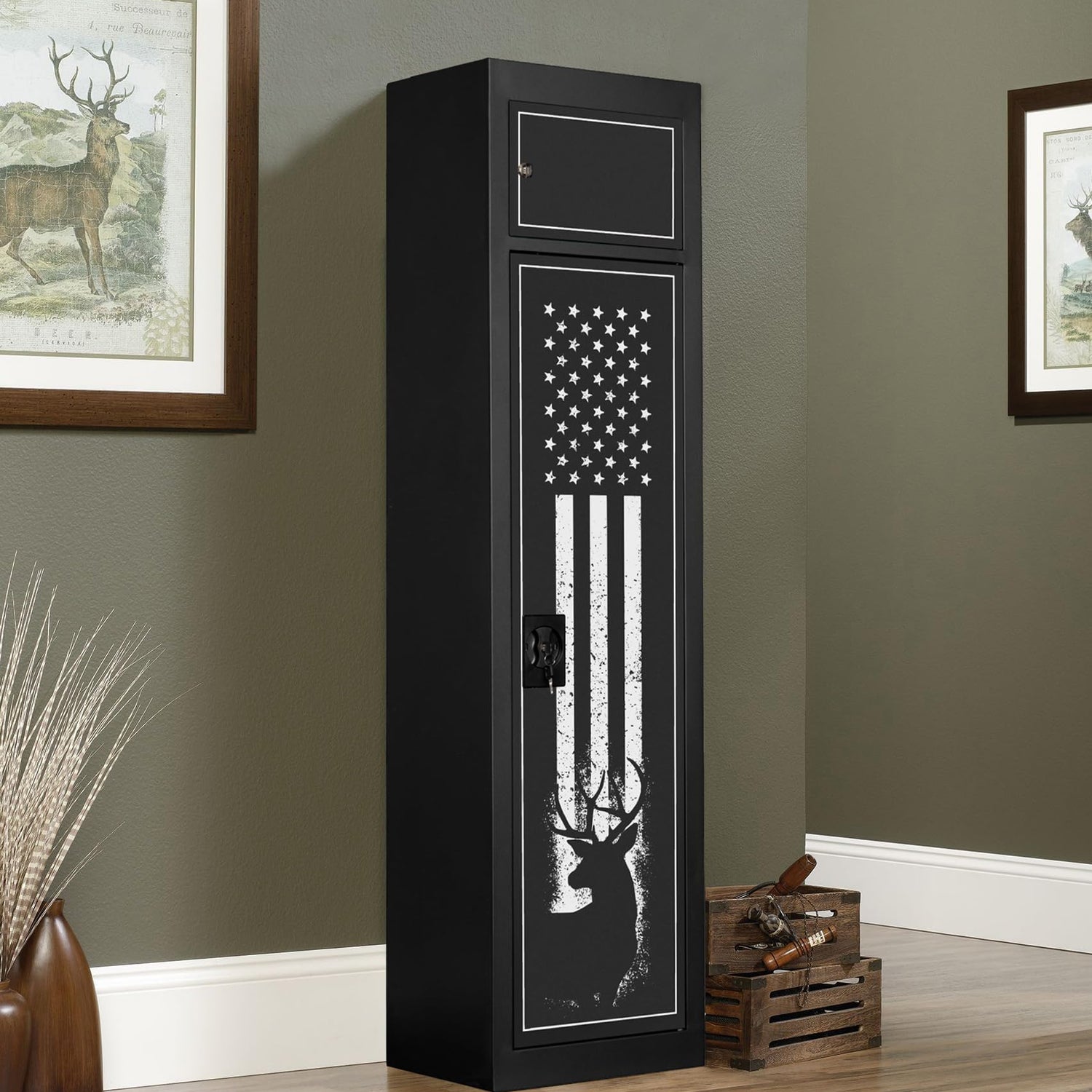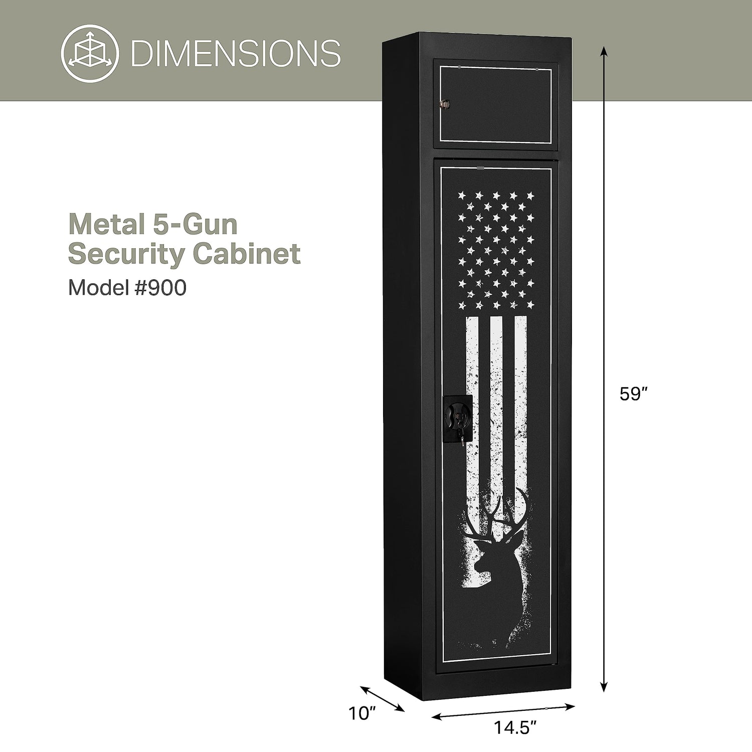 American Furniture Classics Model 900, 5 Gun Metal Security Cabinet with Separate Pistol/Ammo Area