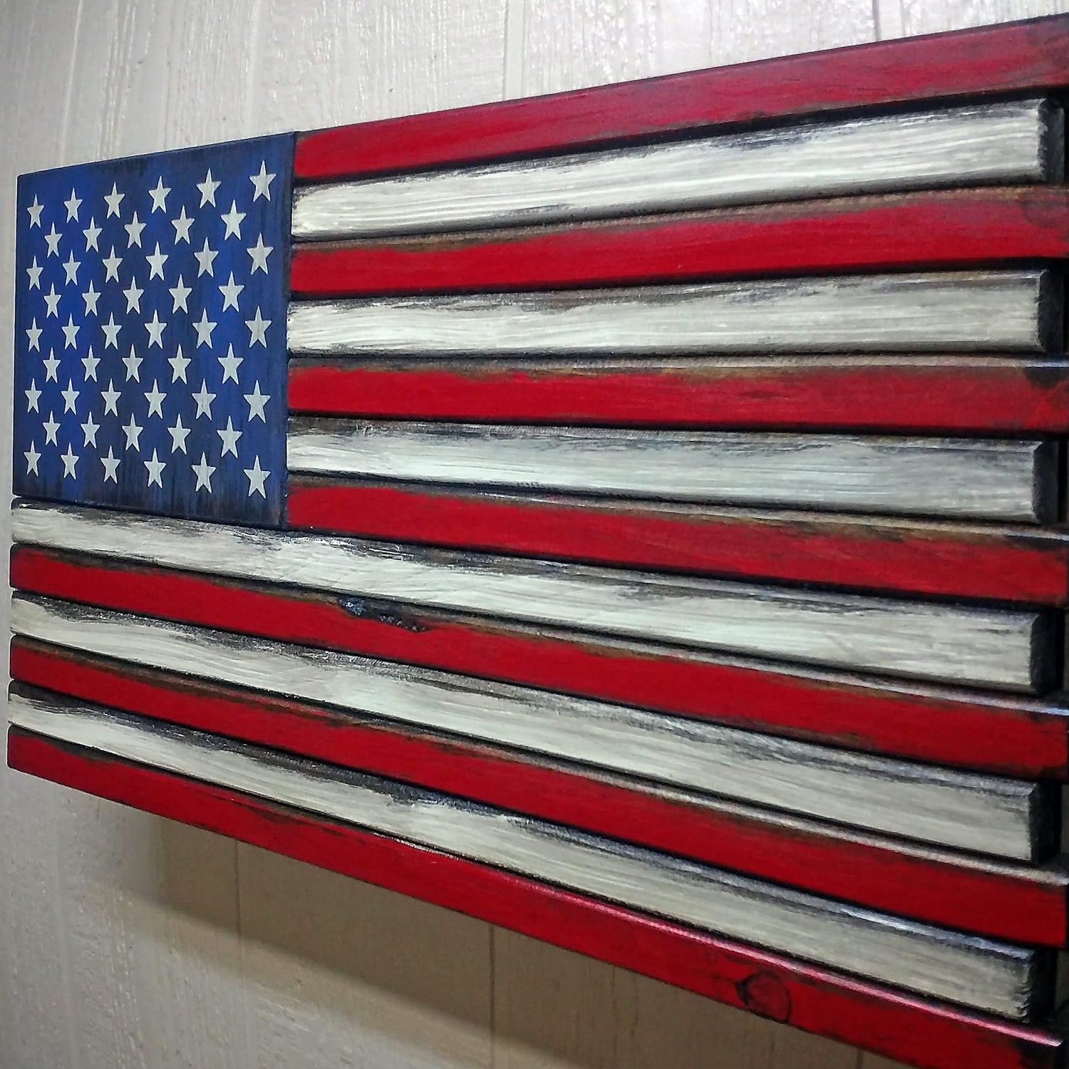 American Furniture Classics Model LRG2COMP Large American Flag Wall Hanging Gun Concealment with Two Secret Compartments, Red White and Blue