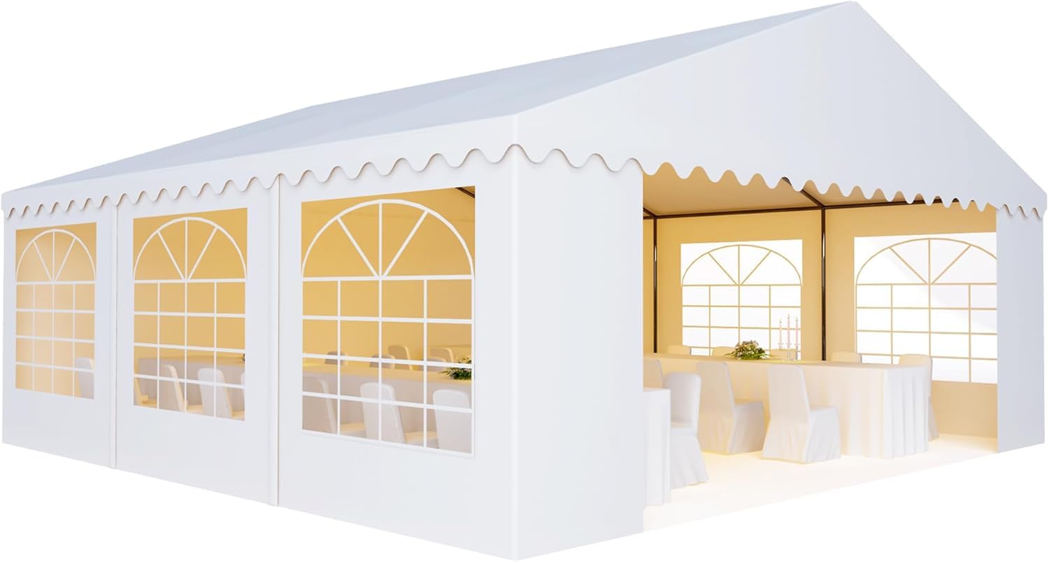 AMERICAN PHOENIX 20x20 Party Tent Heavy Duty Canopy Shelter for Wedding Commercial Event Trade Show with Removable Sidewalls and Windows White (20x20 ft - PE)