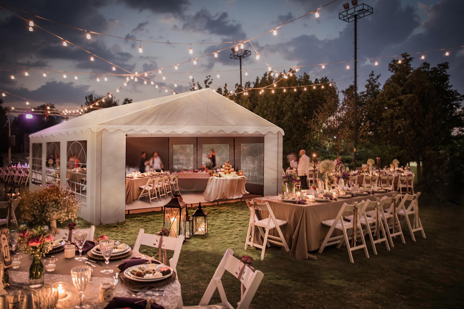 AMERICAN PHOENIX Party Tent 20x20 ft Heavy Duty Canopy Shelter for Wedding Event Fair with Fire Retardant Roof with Sidewalls and Windows White (20x20 - PE)