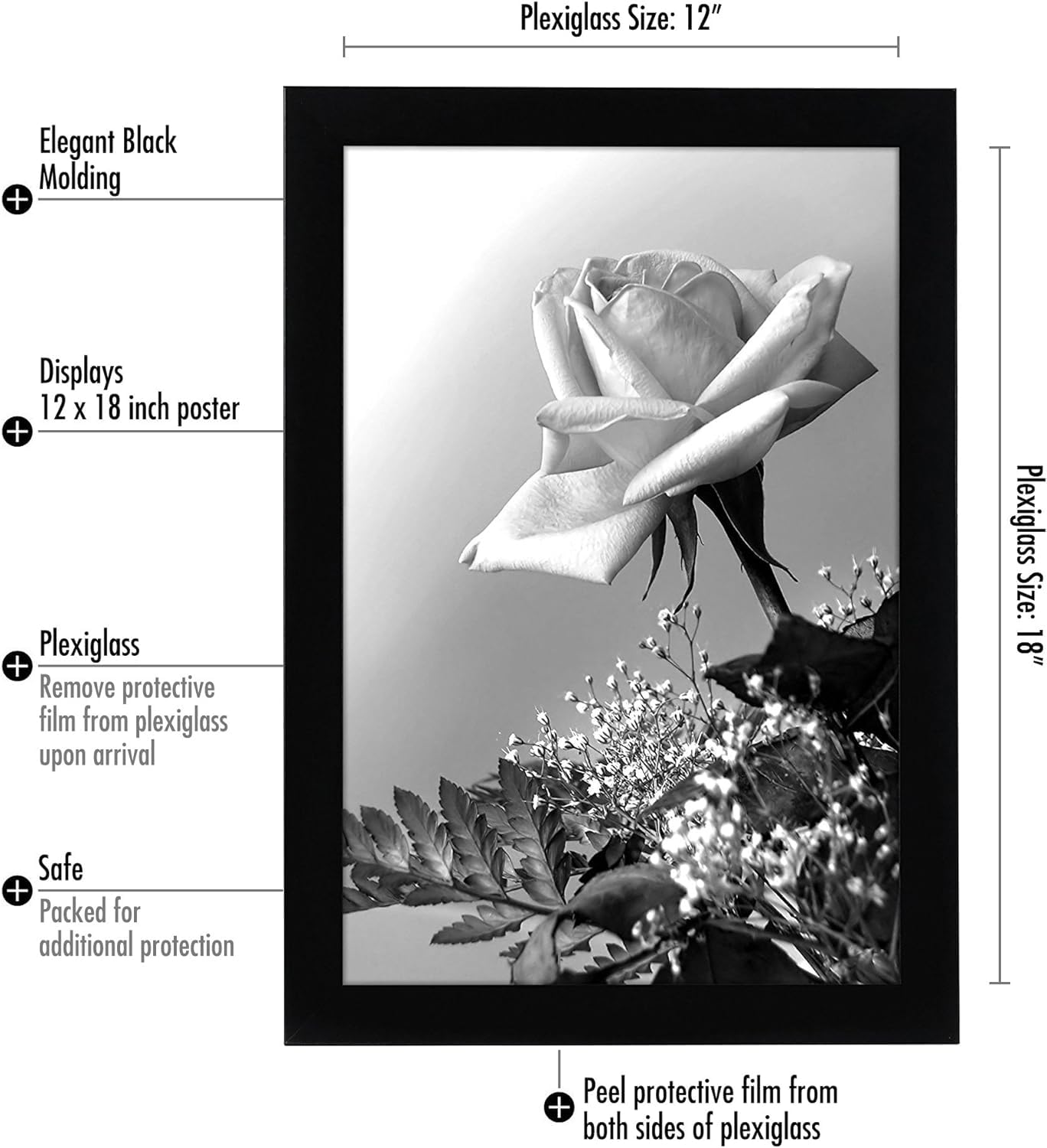 Details: Elevate your home decor with the Americanflat 12x18 poster frame in black. With its classic design, this black frame is the perfect choice for showcasing your cherished memories and favorite photos. Crafted with a wide frame border and a polished plexiglass front, this 12x18 frame adds a touch of style to any space. Designed for convenience and durability, this black picture frame features a sturdy backboard that securely holds your pictures in place. Whether displaying horizontal or vertical images, this gallery style frame offers versatile hanging options with included hardware for easy installation. Say goodbye to complicated framing processes with our easy-to-use turn buttons, allowing you to effortlessly insert and update your photos whenever you desire. Made from high-quality engineered wood (MDF) material, these black frames are built to last, ensuring they become cherished keepsakes for years to come. Don't settle for ordinary frames. Invest in lasting quality and timeless style with this photo frame. Order your frame now and join thousands of other satisfied customers who love our products.