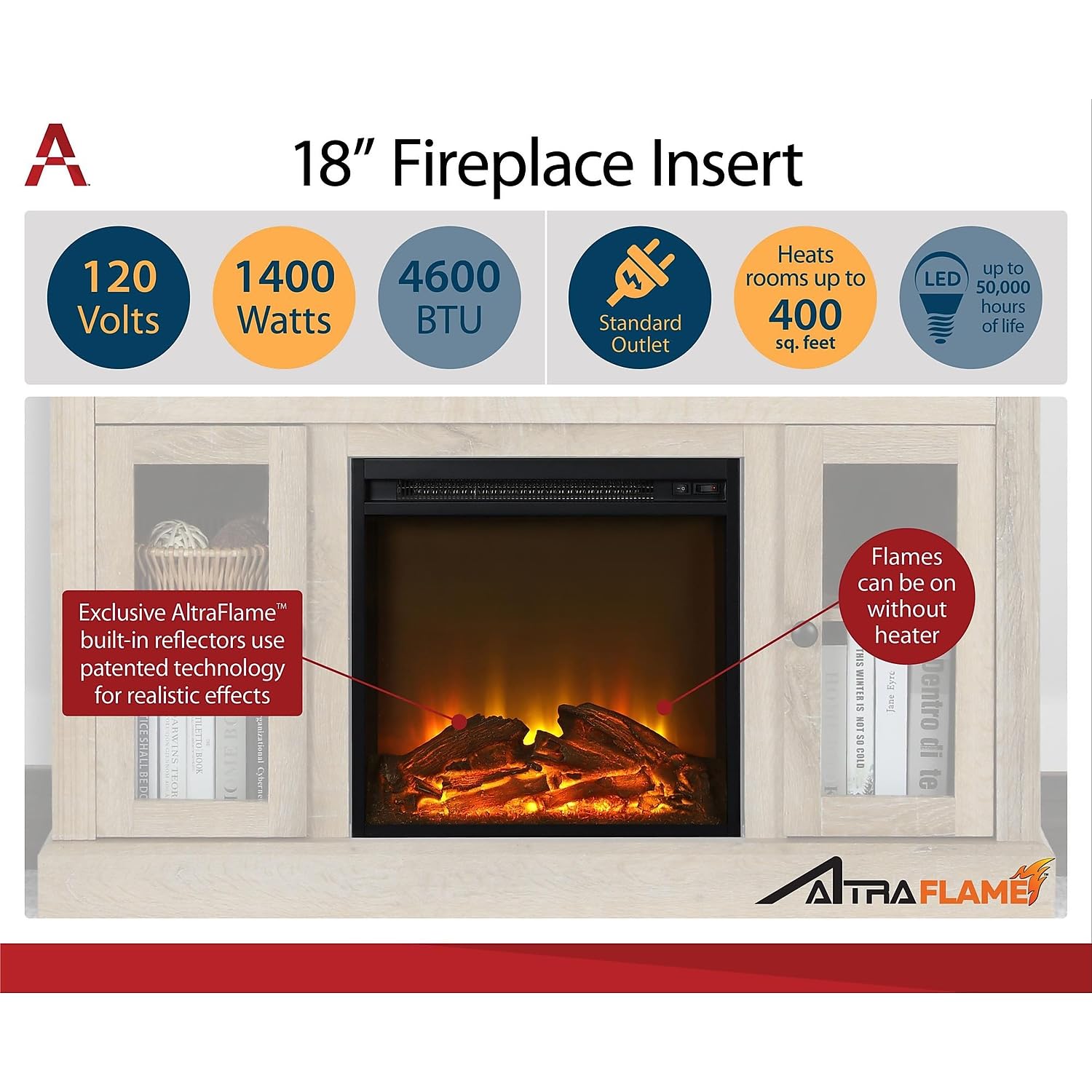 - Exclusive AltraFlame built in reflectors use a patented technology for a realistic flame effect, turn on the flames with or without heat