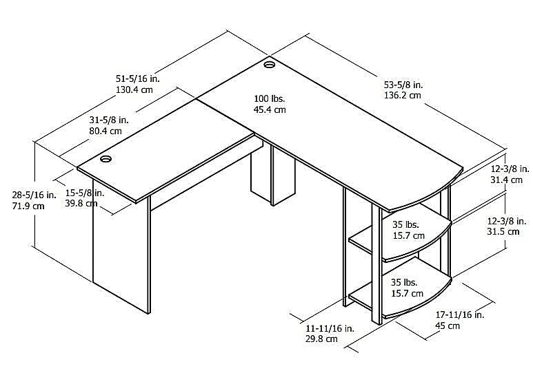 - With plenty of room for your monitor or laptop, as well as papers and other essential office supplies, the L-Shaped Desk even has two grommets built into the Desk to organize and manage your cords.