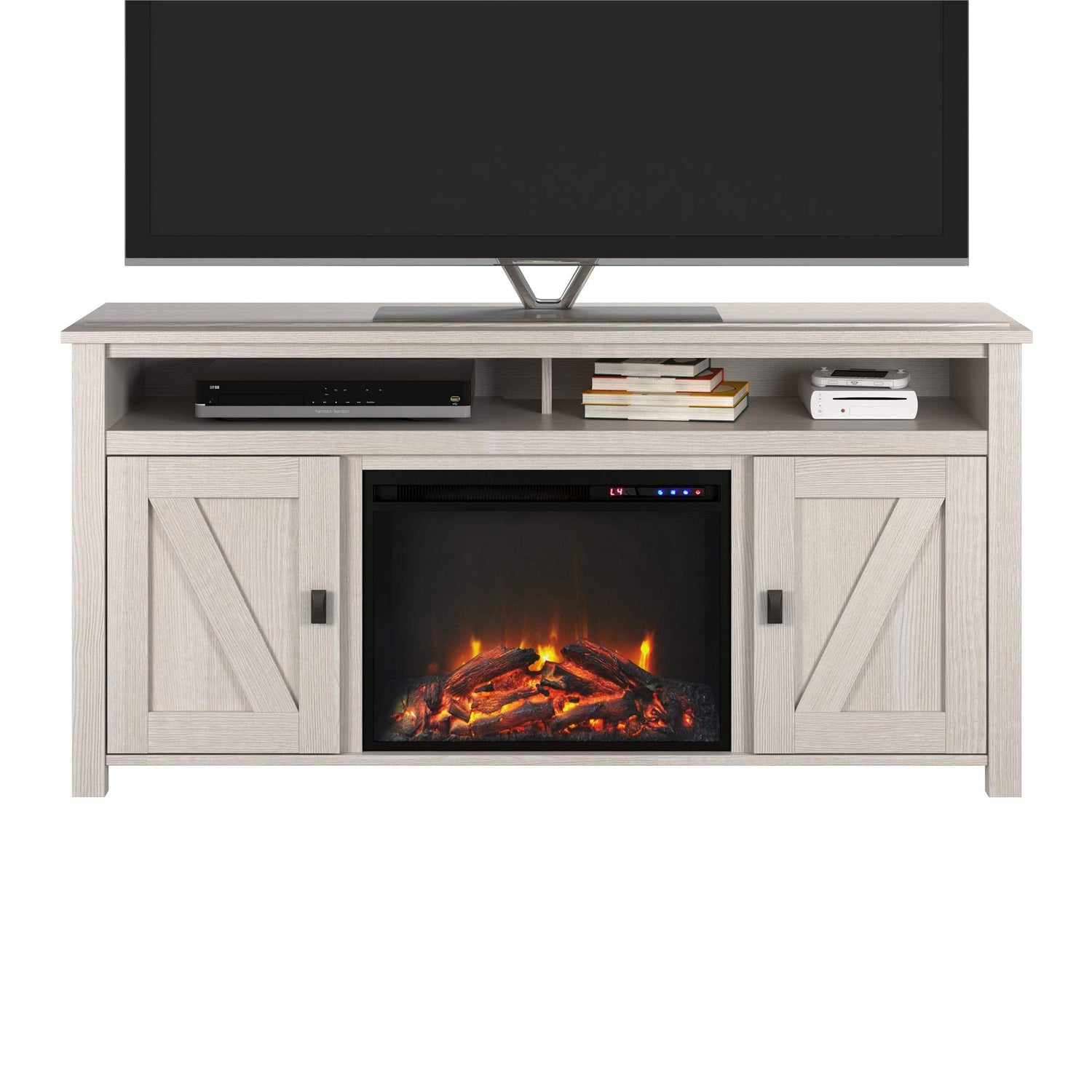 - RUSTIC INDOOR APPEAL: Bring the rustic outdoors in with Ameriwood Home Farmington Electric Fireplace TV Console; It accommodates TVs up to 60" wide or 95 lbs., featuring stunning woodgrain laminated MDF and engineered wood