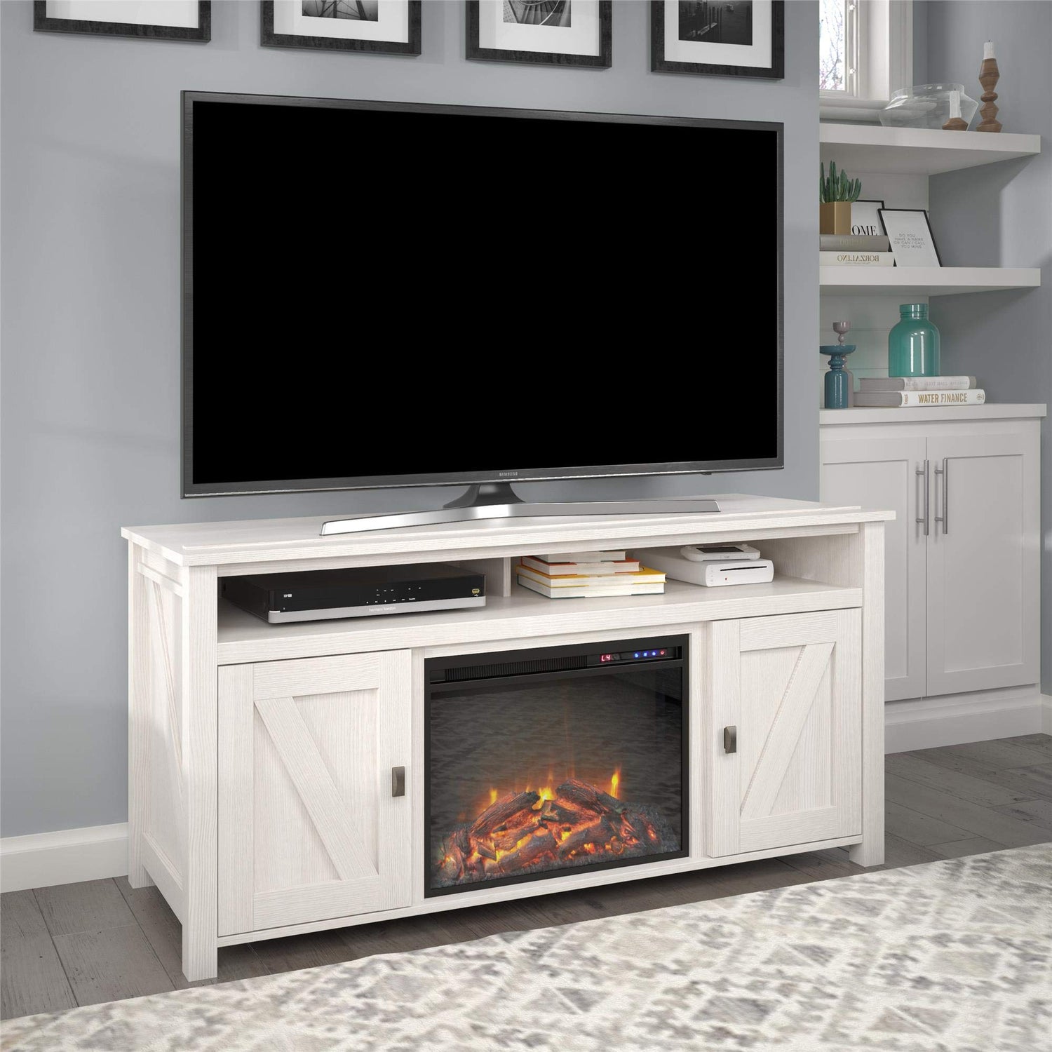 Ameriwood Home Farmington Electric Fireplace Console 60", Pine TV Stand, Ivory Oak