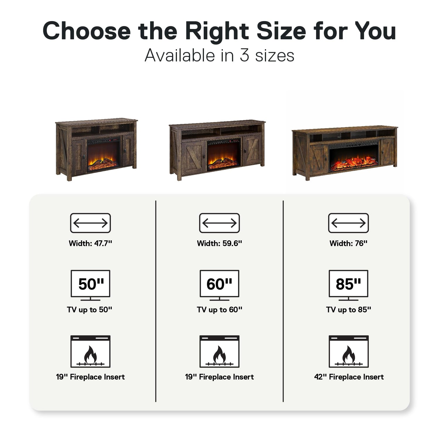 - RUSTIC INDOOR APPEAL: Bring the rustic outdoors in with Ameriwood Home Farmington Electric Fireplace TV Console; It accommodates TVs up to 60" wide or 95 lb., featuring stunning woodgrain laminated MDF and engineered wood