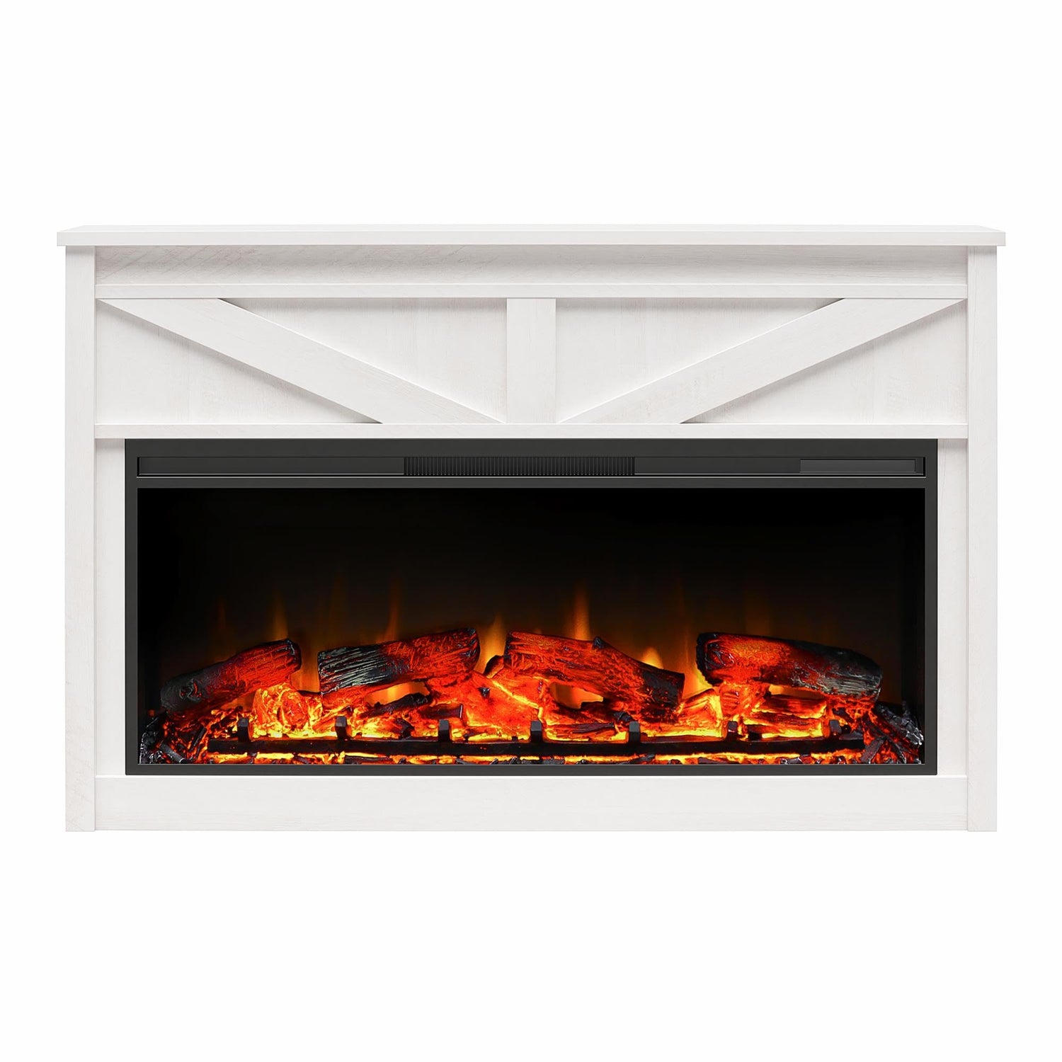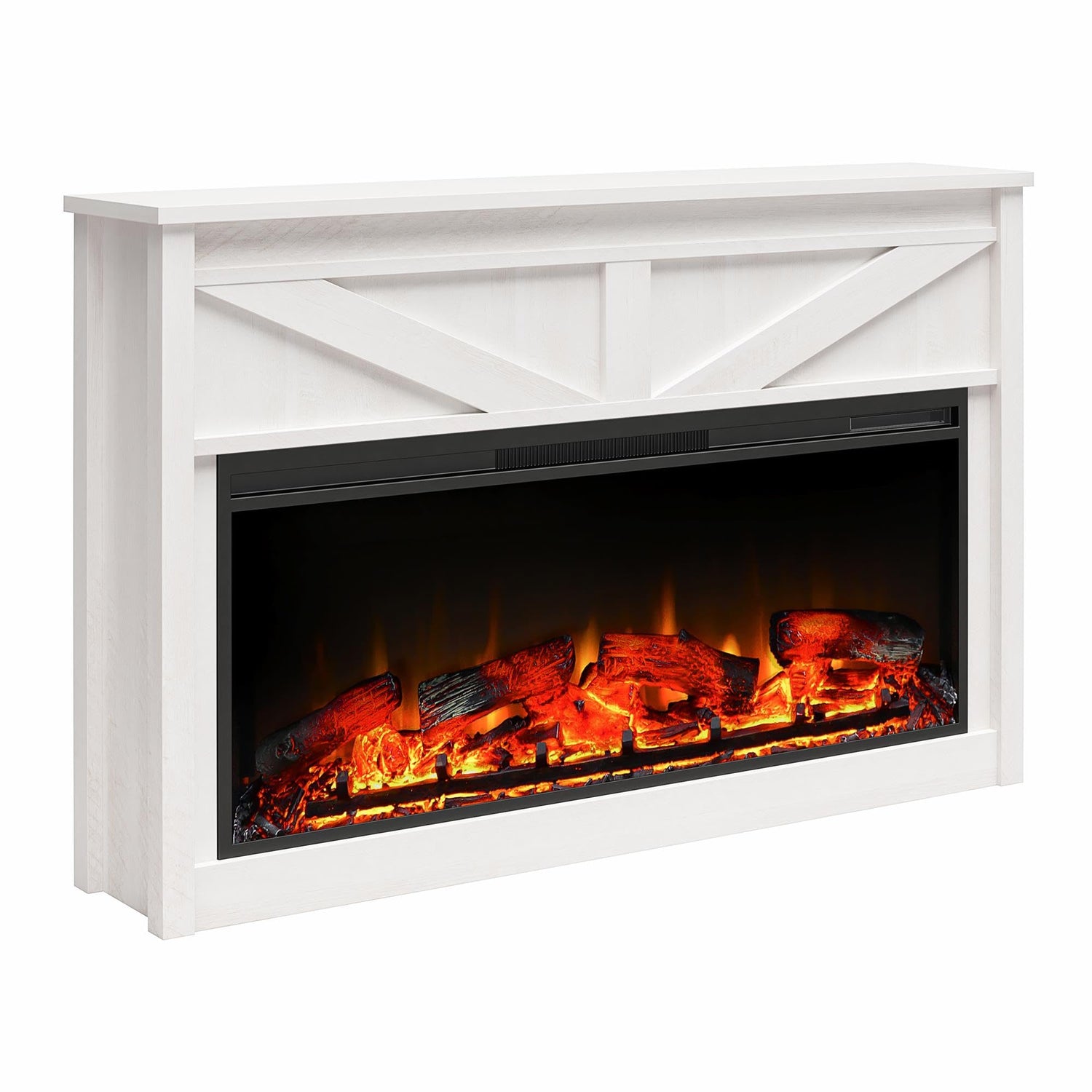 Ameriwood Home Farmington Wide Modern Farmhouse Mantel with Electric Fireplace, 49", Ivory Oak