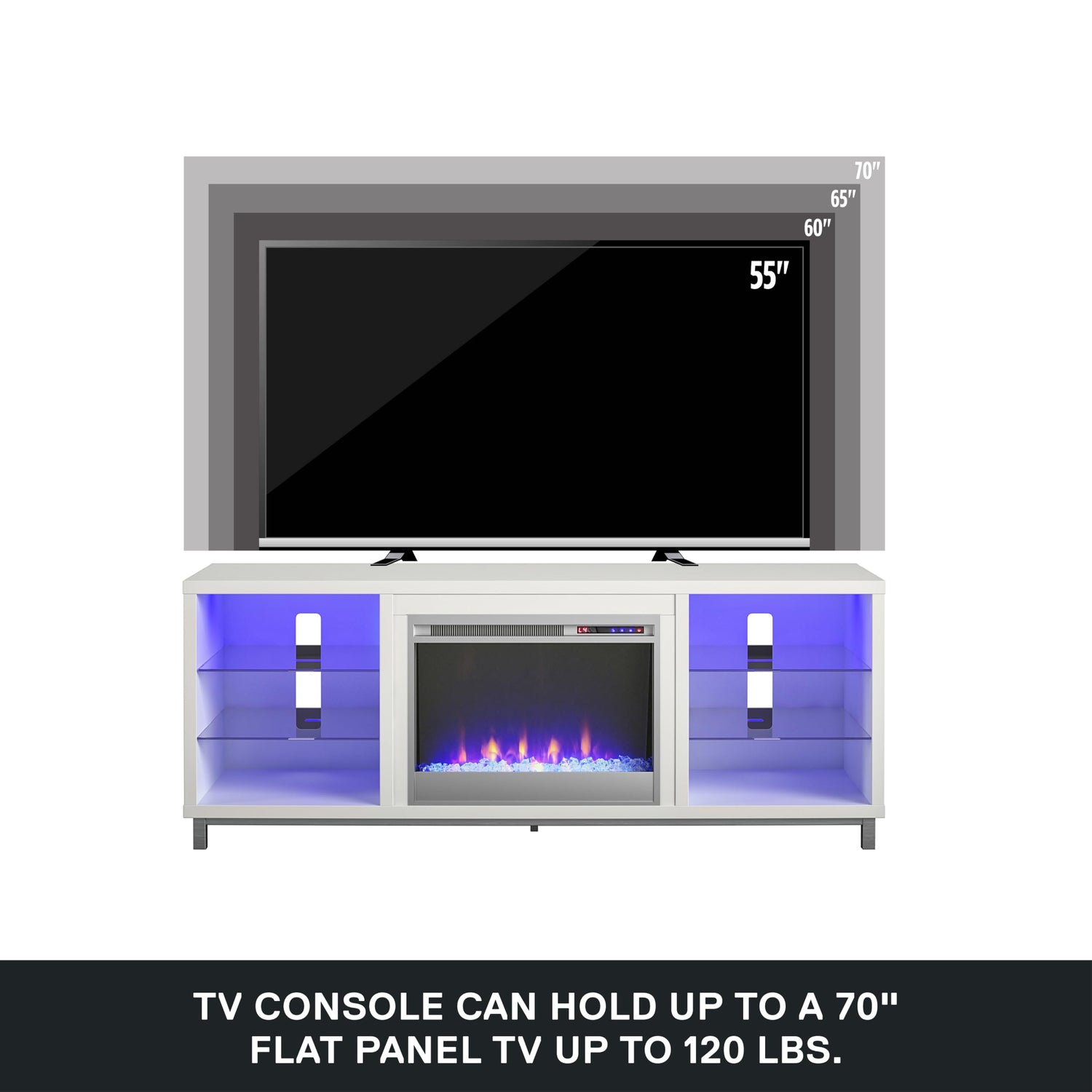 Ameriwood Home Lumina Fireplace TV Stand for TVs up to 70 Inch, Replaceable Electric Fireplace Insert Heater, Remote Control, Timer, Color Changing LED Lights, Crystal Ember Flames, White