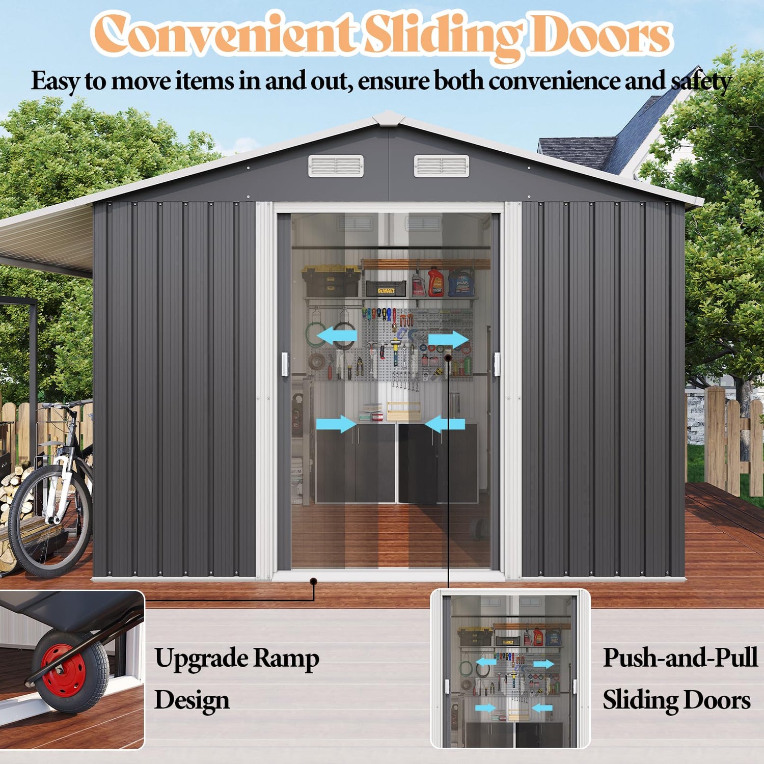 - Smooth Sliding Doors & Ramp: This garden shed features smooth-sliding doors with an integrated ramp, making it effortless to move heavy or wheeled items such as lawnmowers, generators, or wheelbarrows in and out