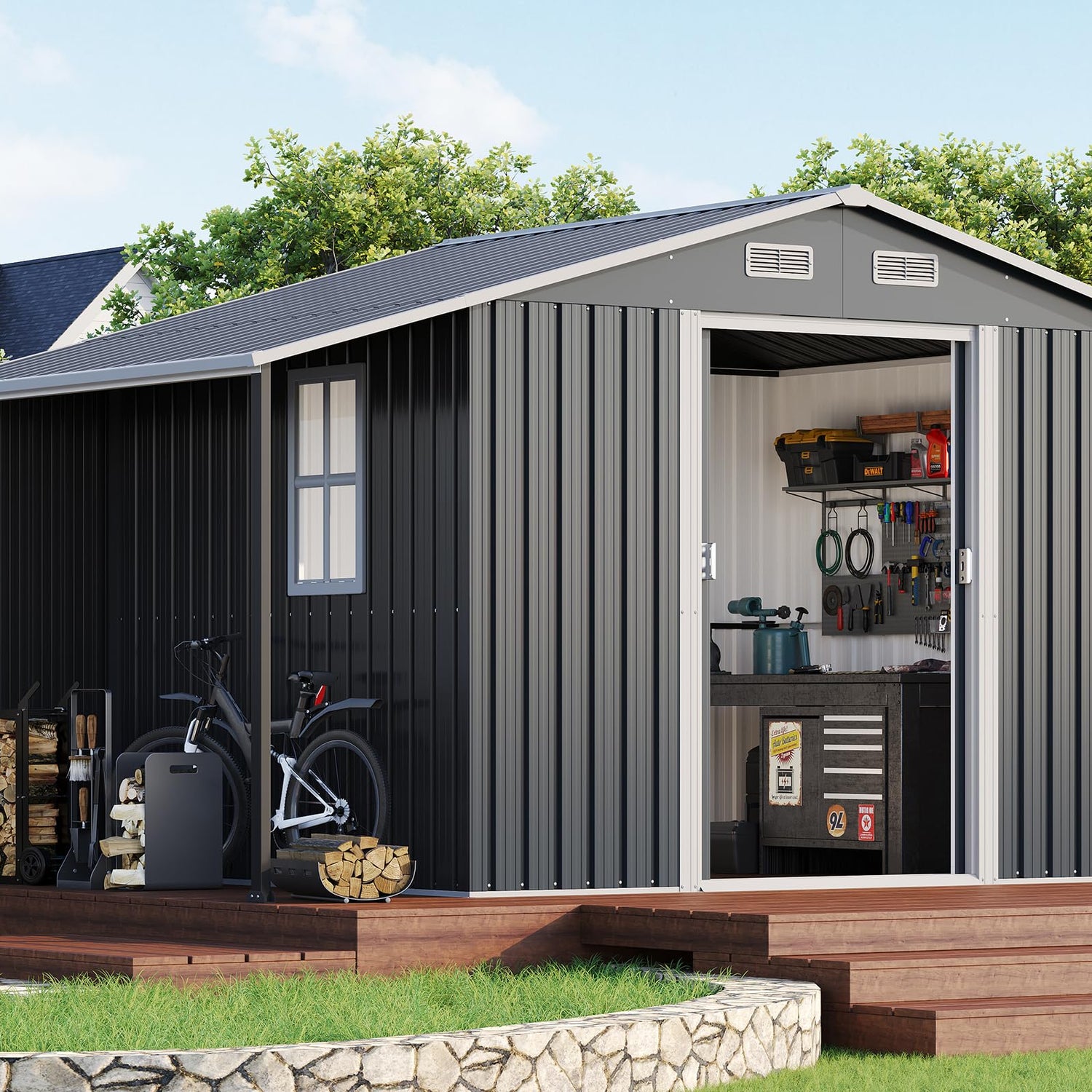 - Bright & Well-Ventilated: Equipped with two 4-pane windows and built-in vents, this metal shed brings in natural light and airflow, reducing dampness, odors, and condensation to keep your tools and firewood dry