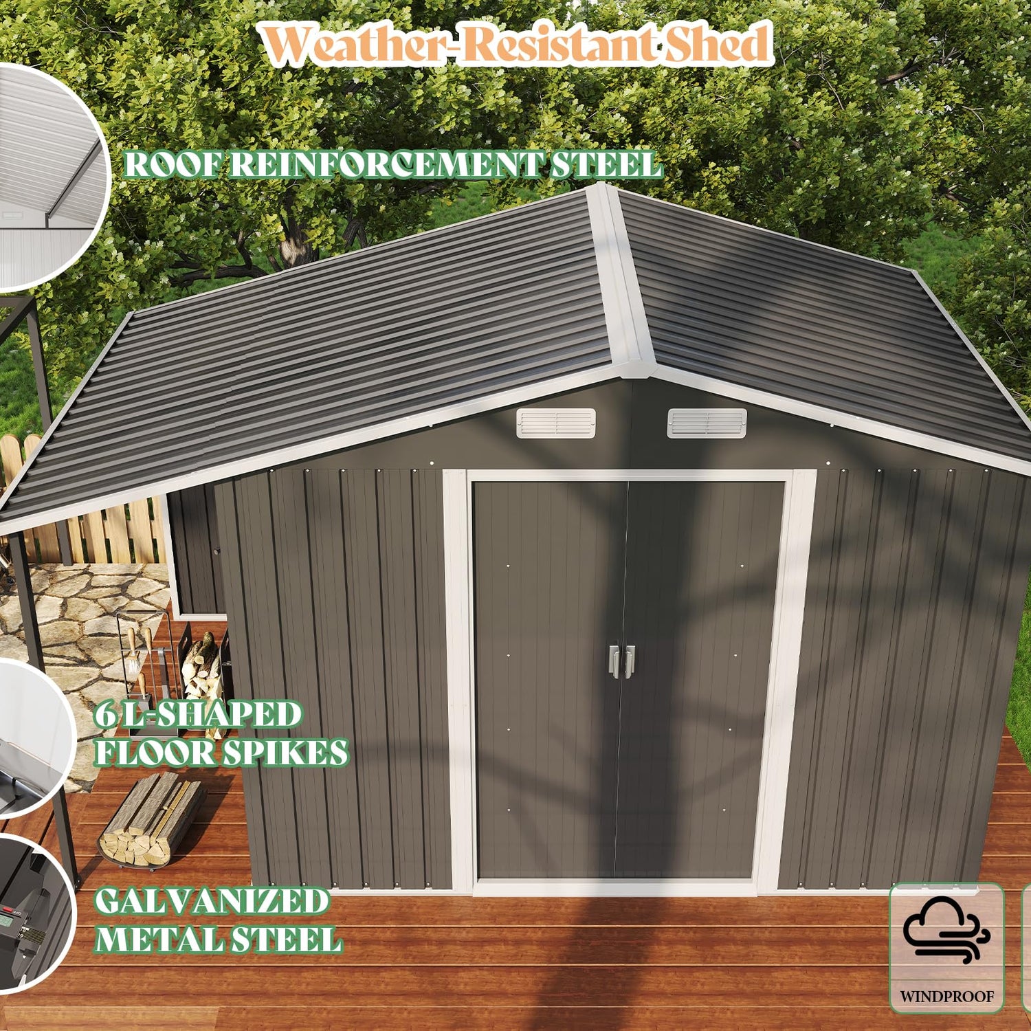 - Weather-Resistant Galvanized Steel Shed: Constructed with 0.25 mm galvanized steel panels, rust-resistant coating, and sturdy framing, offering year-round protection from rain, snow, and harsh UV rays