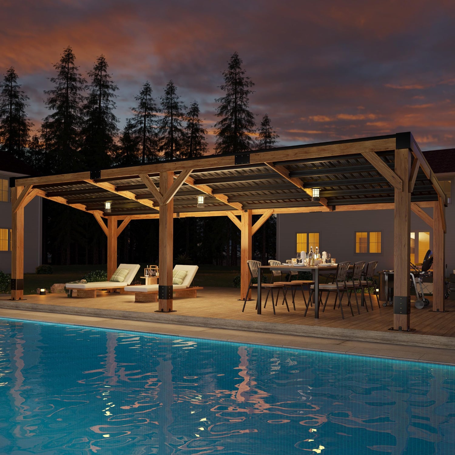 - Thick Steel Roof with Drainage: Galvanized steel roof panels with a sloped design prevent water buildup and distribute snow weight evenly—ideal for year-round use