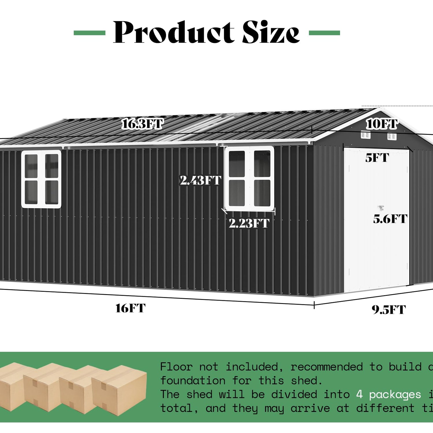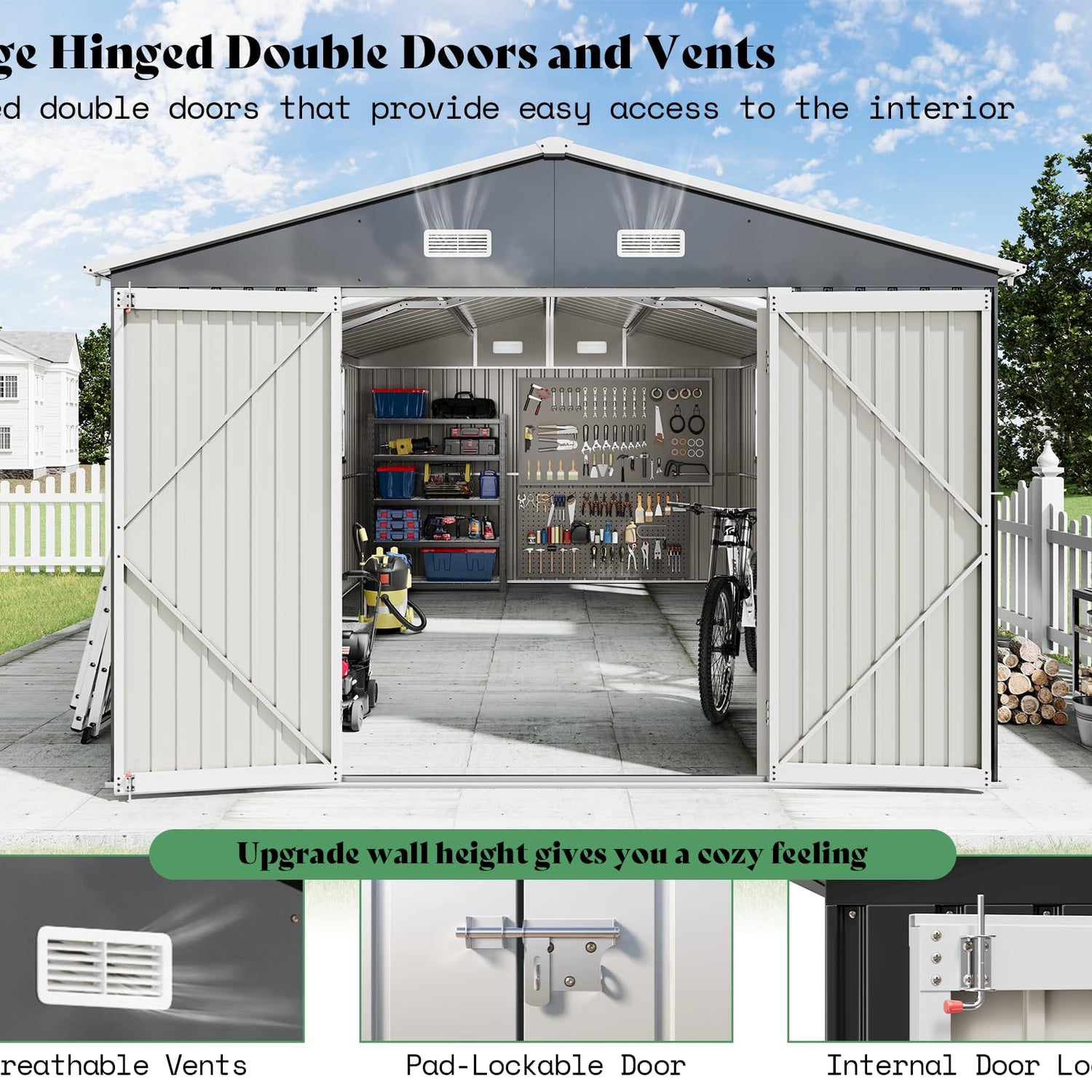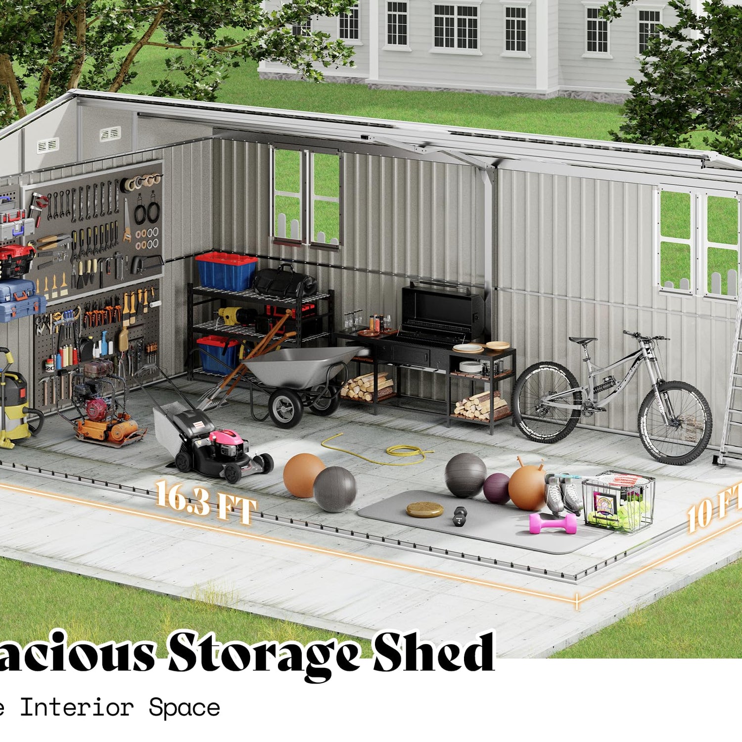 - Spacious Interior for Easy Organization: Measuring 10x16.3 FT, this oversized shed provides ample room for tools, garden gear, and seasonal items. Use it as a spacious storage hub or transform it into your private backyard workshop