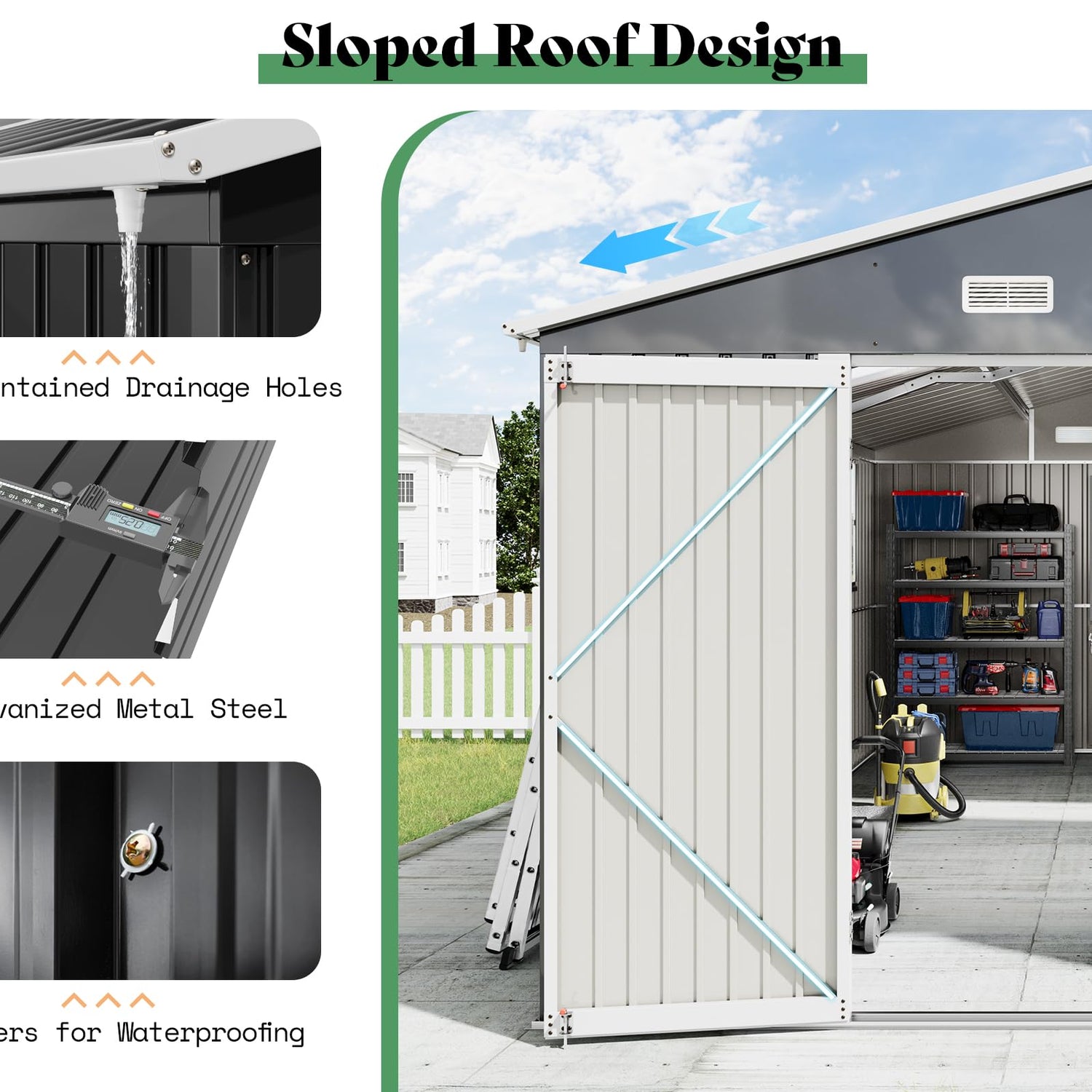 - Durable Reinforced Steel Build: Crafted from 0.25mm galvanized steel, upgraded reinforced tube gantry frame and drainage holes, it's built to resist rust, wind, and weather year-round, giving you added durability and peace of mind for outdoor storage shed