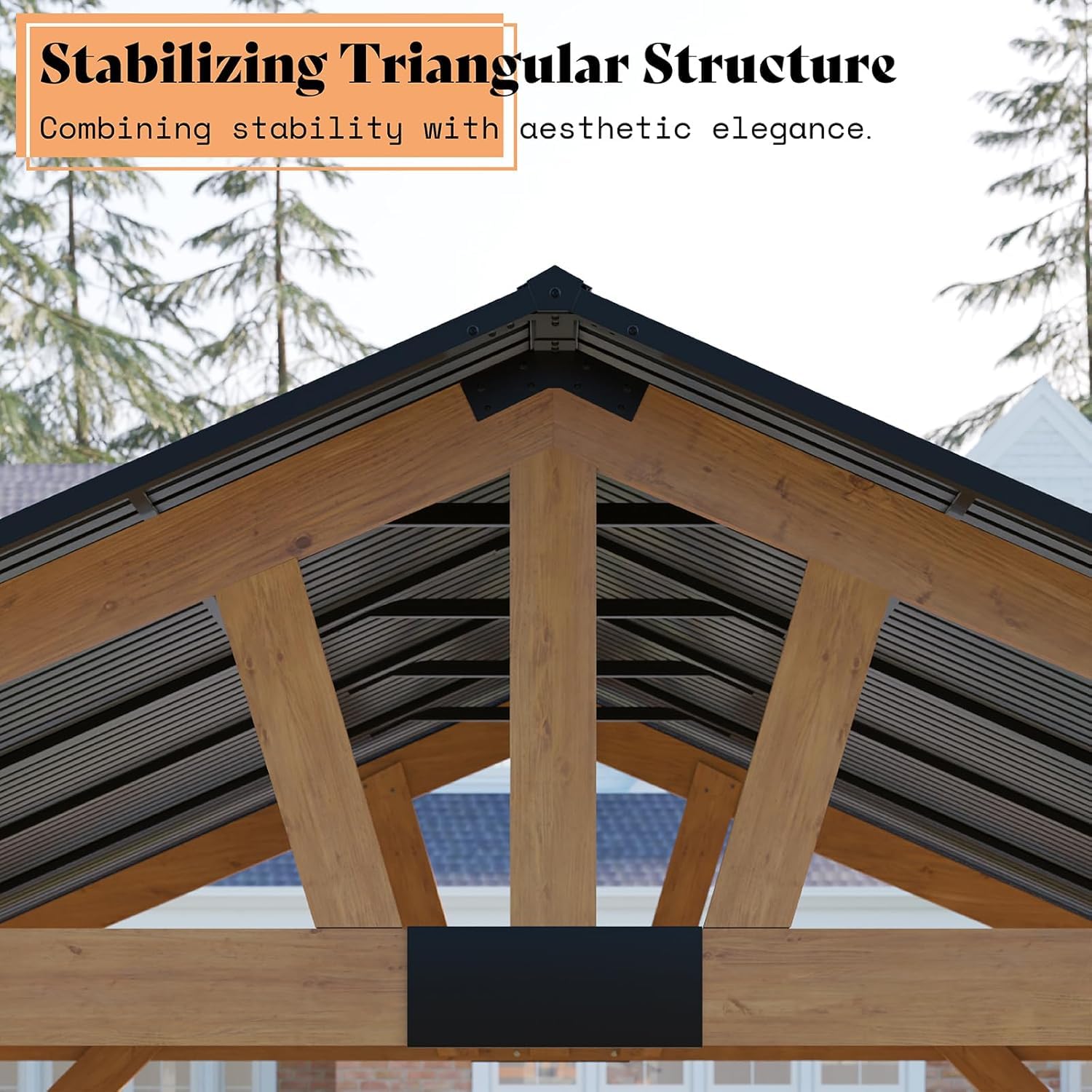 - Aesthetic Design: Chic iron top wooden gazebo with top beams for hanging items. Creating stunning outdoor spaces with our elegantly designed structures.