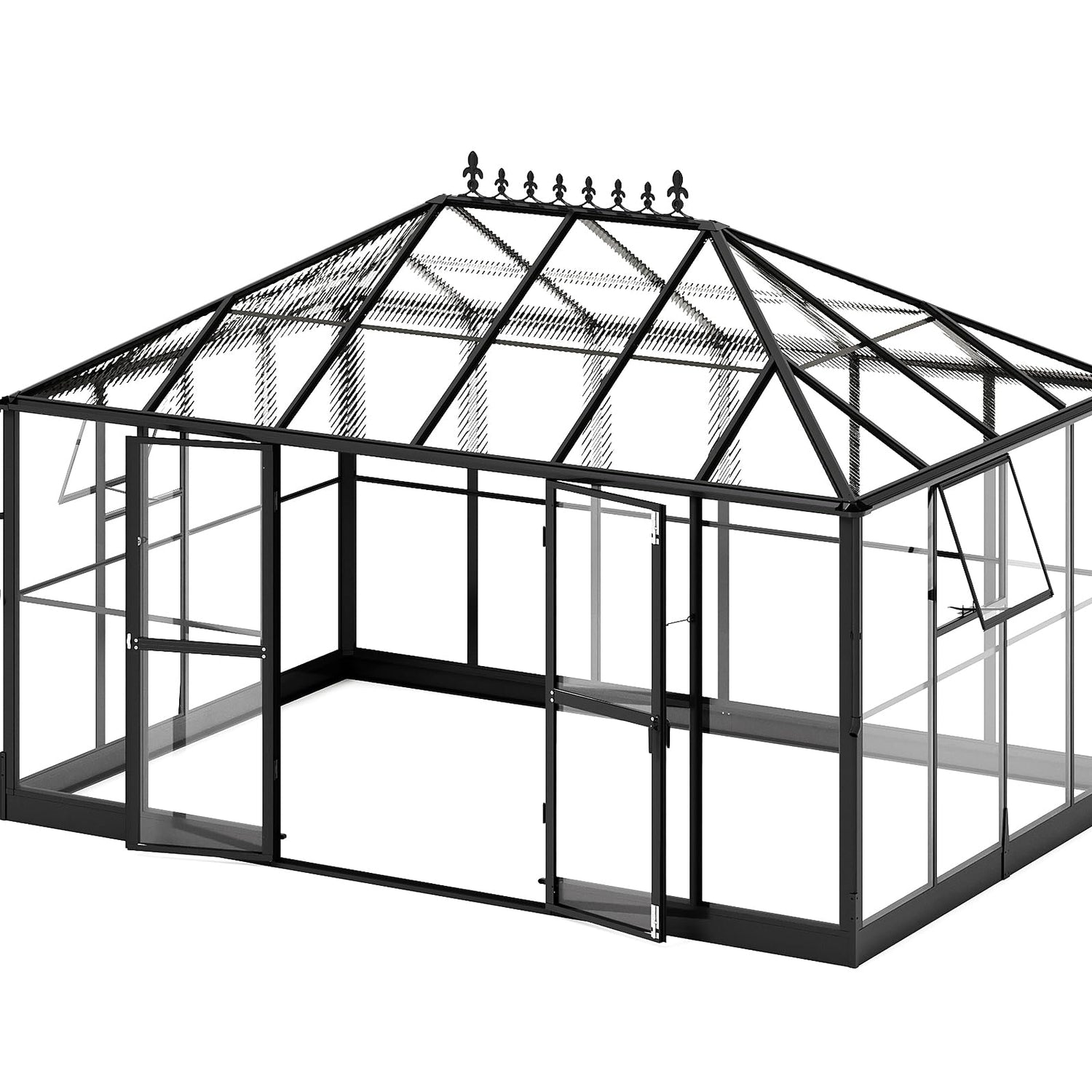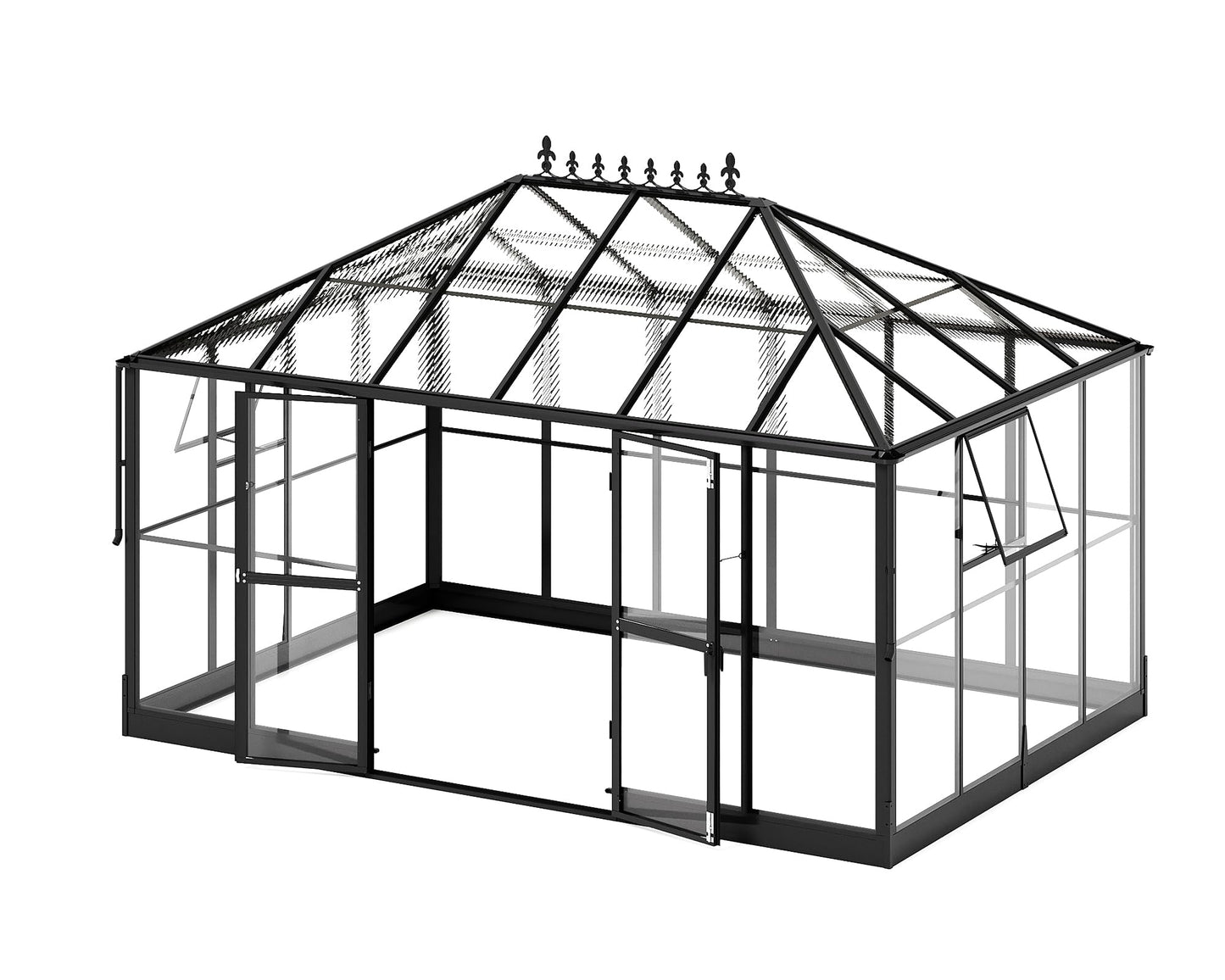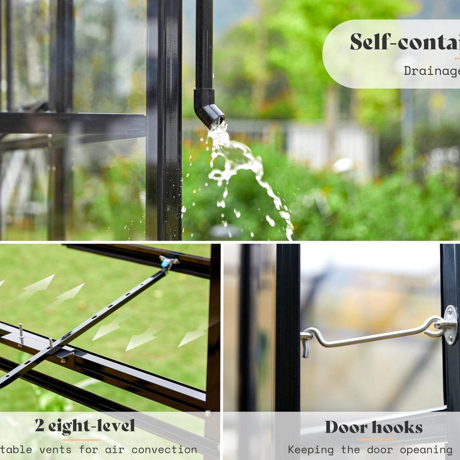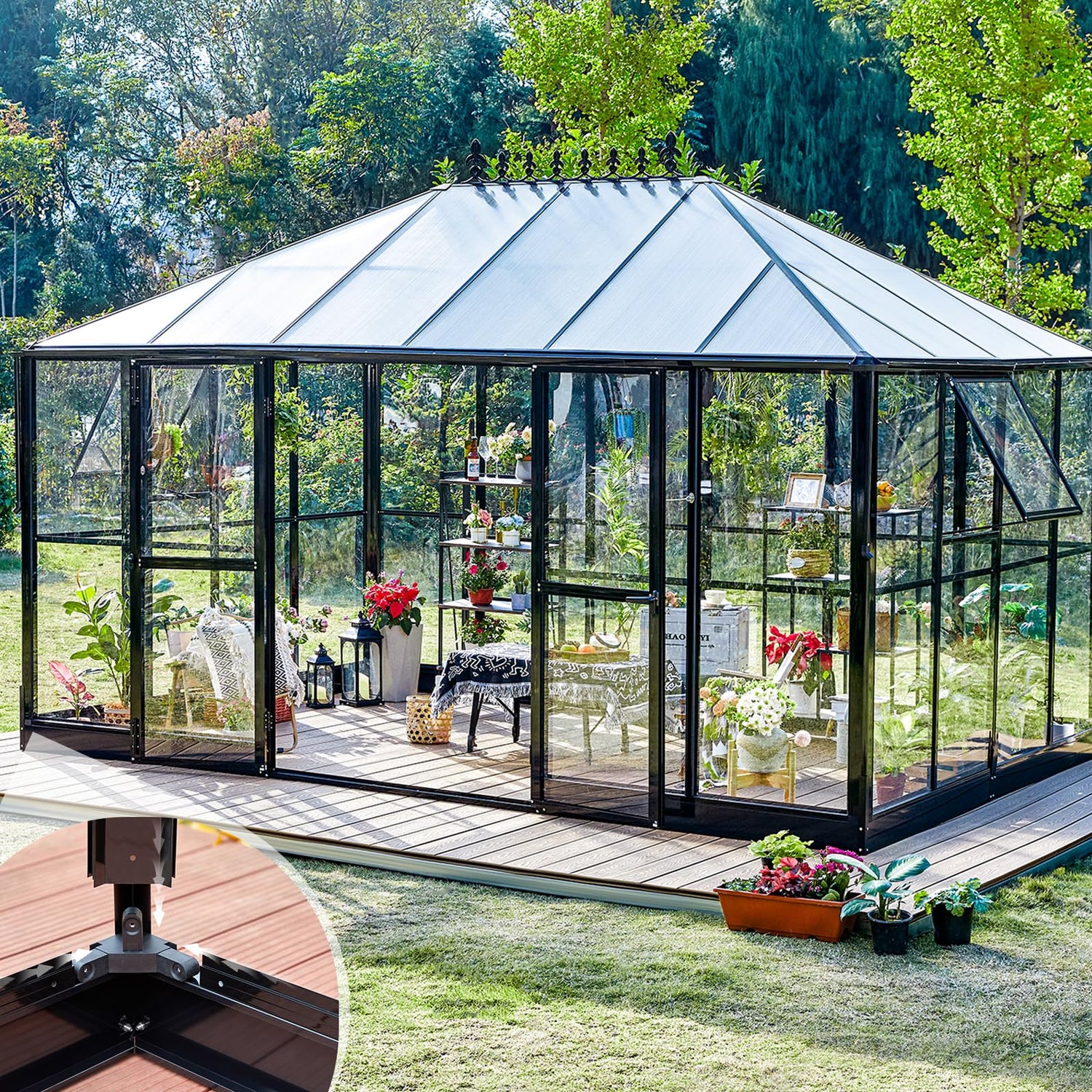 AMERLIFE 14x9.5x9 FT Hybrid Polycarbonate Greenhouse Quick Connector Fast Assembly, Swing 2 Doors Clear Panels, Walk-in Large Aluminum Greenhouse Winter Greenhouse for Outdoors, Black