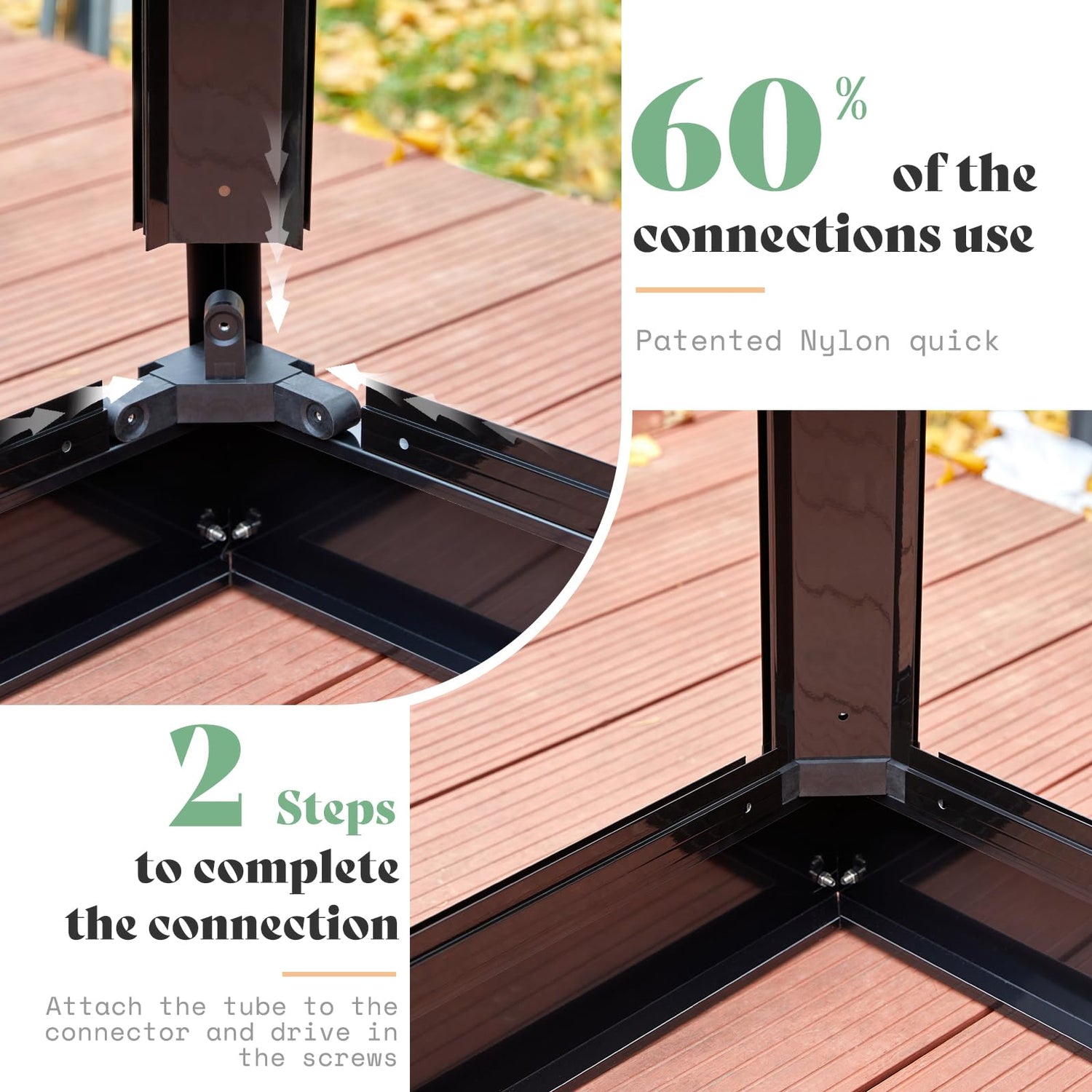 - Upgraded patented quick connector: 60% of the connections use connector, used for over 10 years. screws are pre-embedded, saving installation time. 3 DIY enthusiasts can erect in 8 hours by saving half time of others