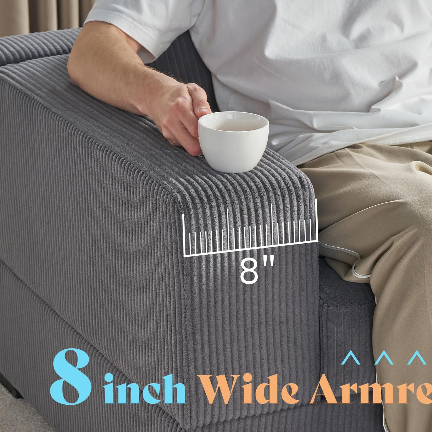 - Sophisticated Corduroy Upholstery: With its distinct tactile quality, durable dcorduroy fabric radiates both comfort and warmth, making it the ideal material for settling down and enjoying the cozy sofa.