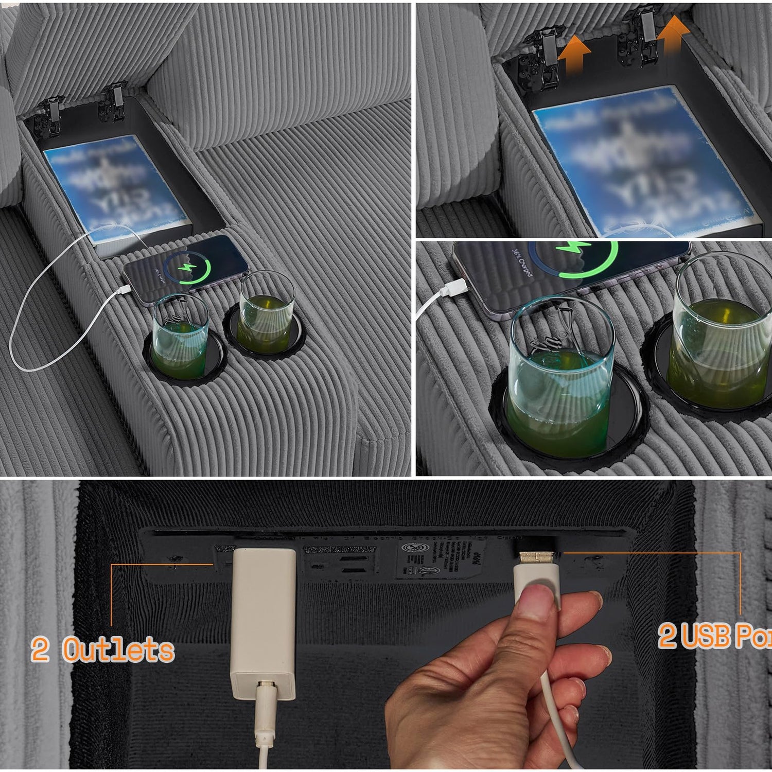 - Ultimate Convenience: The multifunctional console of the oversized couch features 2 outlets, 2 USB ports, and 2 cup holders, making it an ideal coffee table for casual conversations or movie nights. Its hidden storage keeps your area tidy and organized.